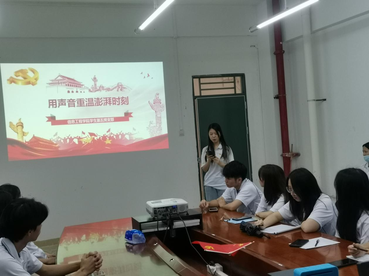 7月5日,ok138太阳集团古天乐学生第五党支部在信工财经楼328召开主题为“重温澎湃时刻”的学习分享会。本次会议由支部书记苏碧玲主持,全体学生党员参与。