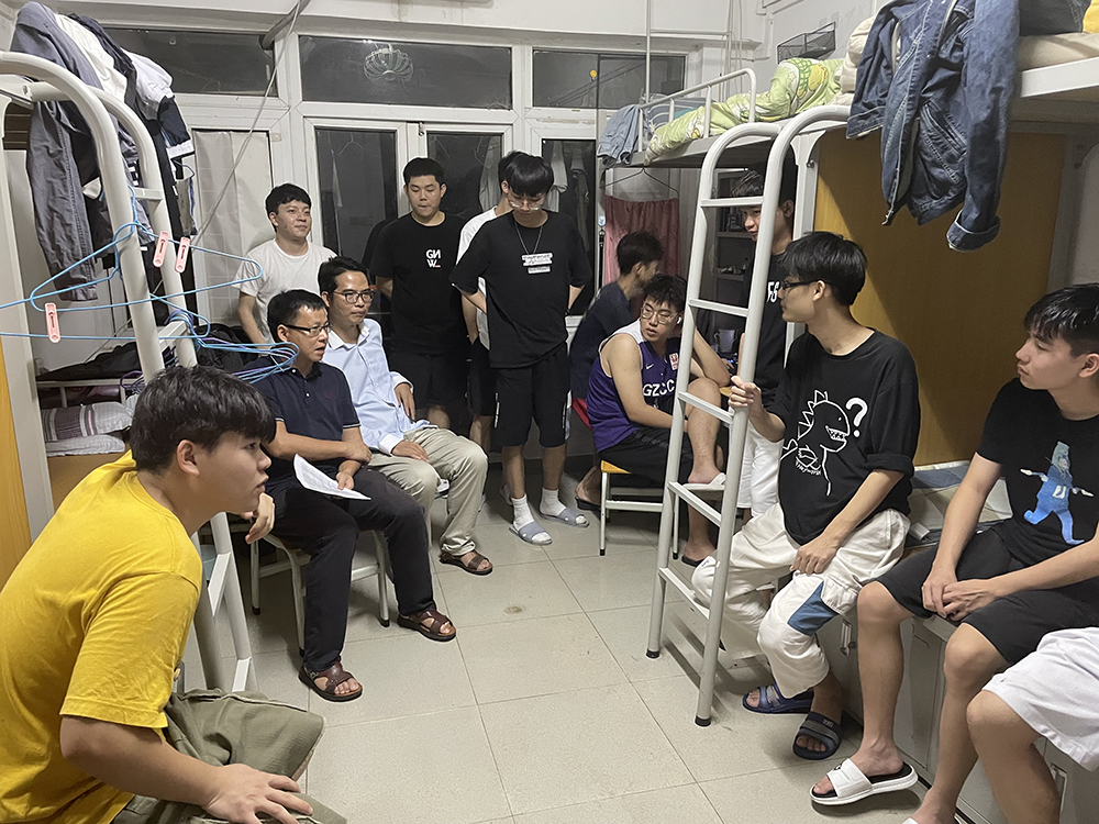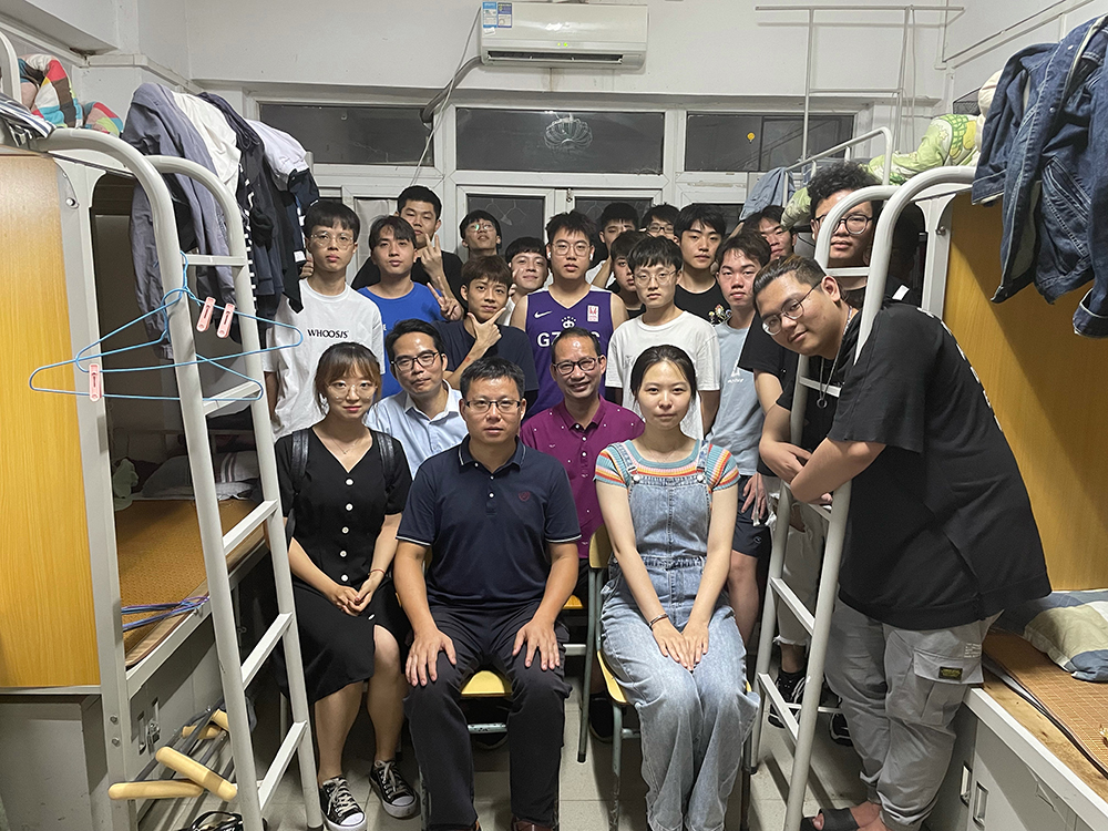 为了进一步加强实习安全教育,让每一个同学都清楚实习安全问题,2021年7月7日晚上,ok138太阳集团古天乐副院长汤锋,软件教研室主任梁奂晖,指导学徒班顶岗实习工作的老师李建平、高寒,以及辅导员胡婷一行走访了2022届软件学徒班宿舍。