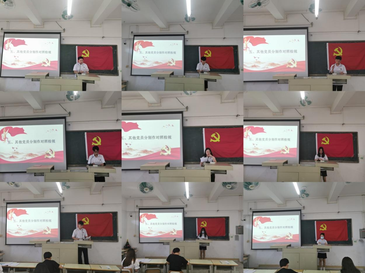会议伊始,梁土权分别从召开专题学习会、谈心谈话以及征求意见等会议前的准备工作进行了通报,并汇报了5月份党支部成立以来工作总结;接着,支部书记、支部委员以及各党员逐一上台从四个方面进行对照检视:一是学习习近平总书记在庆祝中国共产党成立100周年大会上的重要讲话情况,有什么心得体会;二是学习习近平新时代中国特色社会主义思想和党中央指定材料情况,读了多少,有什么感悟和收获;三是对照党史学习教育目标要求,自身在坚定理想信念、增强历史自觉、弘扬优良传统、加强党性锤炼等方面还存在哪些差距和不足;四是党员先锋模范作用发挥怎么样,立足岗位、履职尽责做的怎么样,为身边群众做了什么实事好事,还有哪些差距等。