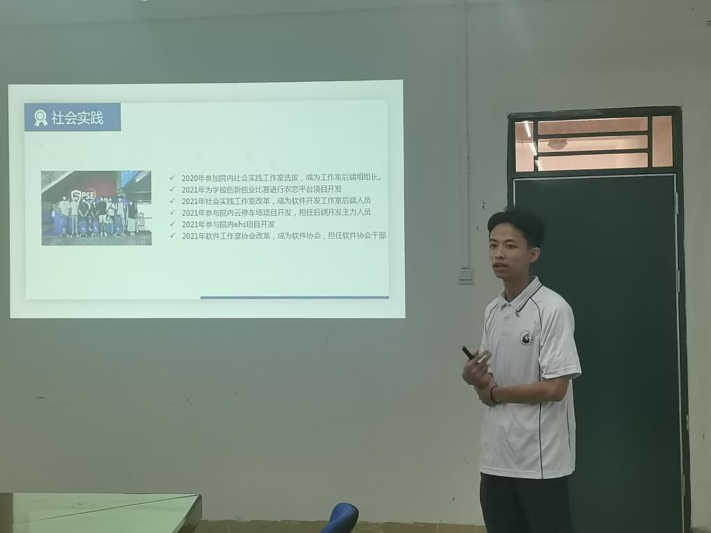 本次国家奖学金评选会议主要分为候选人展示和评选小组评审两个环节。在候选人展示阶段,各候选人从自身思想动态、学习情况、活动竞赛获奖和志愿服务等方面进行展示,评选小组从候选人的展示PPT及个人表现等方面着手,秉着公平公正公开和优中选优的原则,根据学校的分配指标,综合考虑拟确定3名国家奖学金获奖人员分别为:19软件技术技术专业杨健烽、19软件技术技术专业卢占欣、19计算机应用技术专业周泳宾。