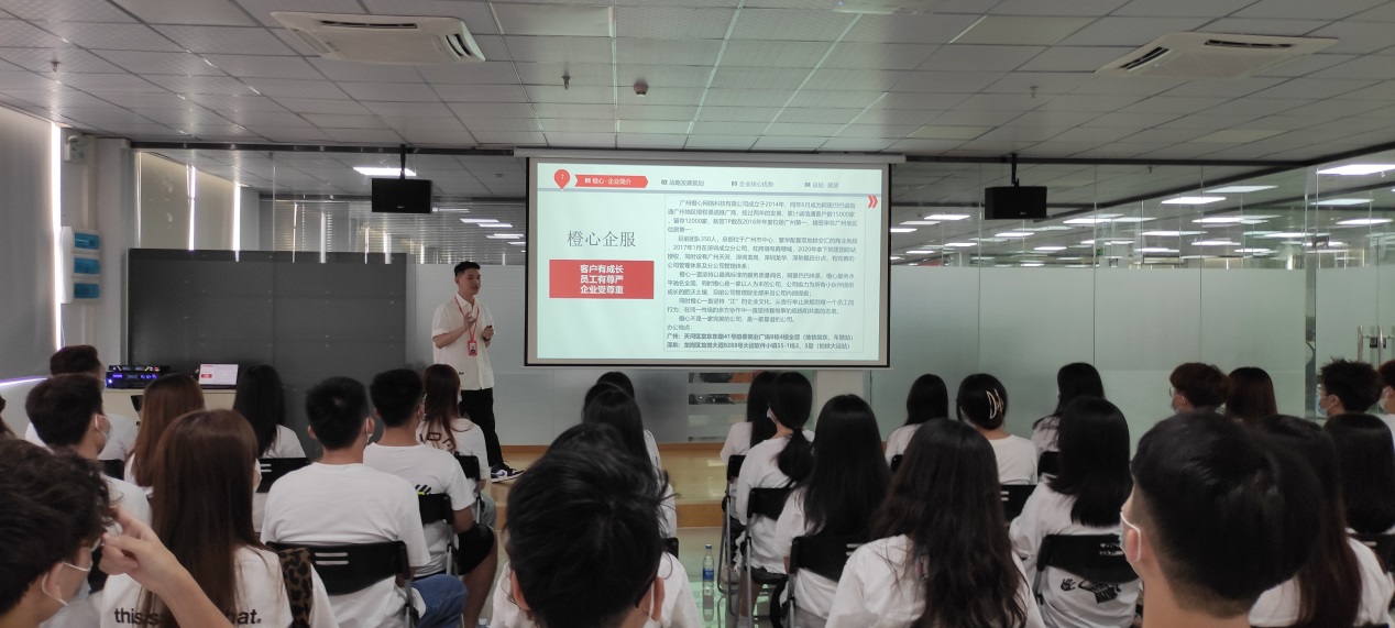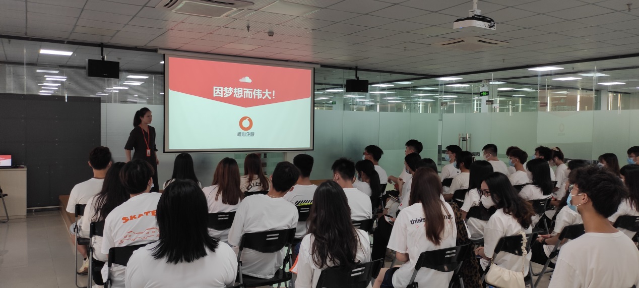 在公司人事经理李春艳的组织下,同学们在公司会议室观看了企业宣传视频,接着公司业务总监黄炜烽详细介绍了公司企业文化、公司战略发展规划、企业核心优势、企业招聘岗位和公司的未来展望,展示了让客户有成长、员工有尊严、企业受尊重的企业情怀。
