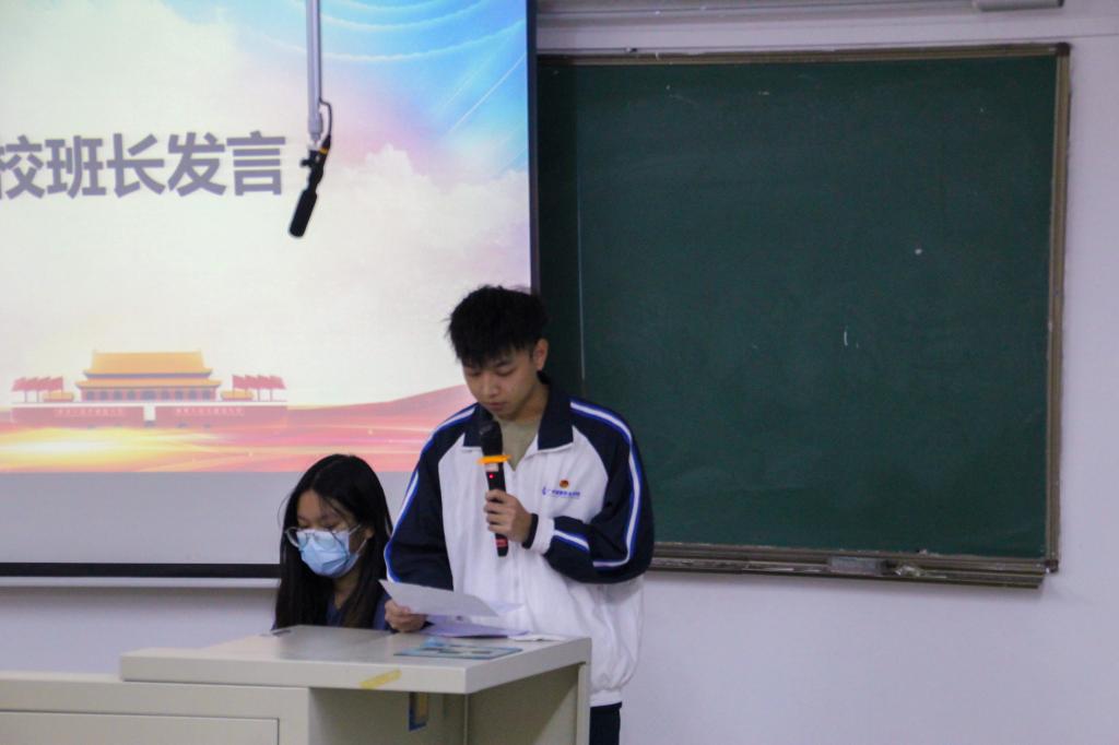 随后,党校班班长欧阳迪豪上台发言,他表示会尽心尽力服务同学和老师,对上,认真传达领导和老师的任务与要求,积极配合老师做好班级管理工作,帮助老师顺利完成教学计划,实现教学目标和任务;对下,积极服务于班级同学的学习和生活,加强与同学们的交流和沟通,关心同学们的学业进展,帮助同学们顺利完成党校班培训的学习。