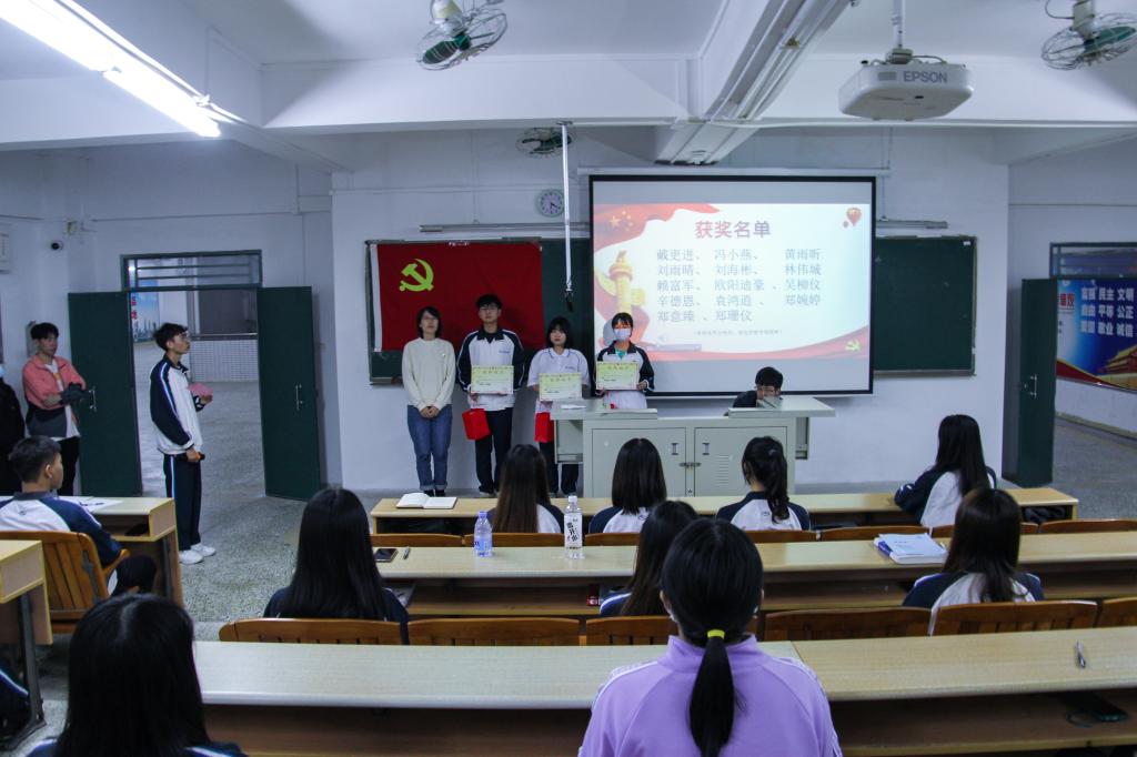 颁奖典礼在庄严的国歌中拉开帷幕,主持人宣读了本次活动的获奖者,对获奖者表示热烈的祝贺。紧接着,党建指导老师苏碧玲为获奖者颁发了奖品和奖状,并对本次活动作出总结发言。苏碧玲指出,同学们要把个人的学习和党的事业结合起来,把个人的大学梦和中华民族伟大复兴的中国梦结合起来,增强动手能力和爱国意识,进一步弘扬爱国精神,提高个人责任感和使命感,为国家和社会作出更多积极的贡献。同时,苏碧玲希望在场的入党积极分子能够以获奖者为榜样,积极参加各项实践活动,提高个人党性修养,争取早日入党!