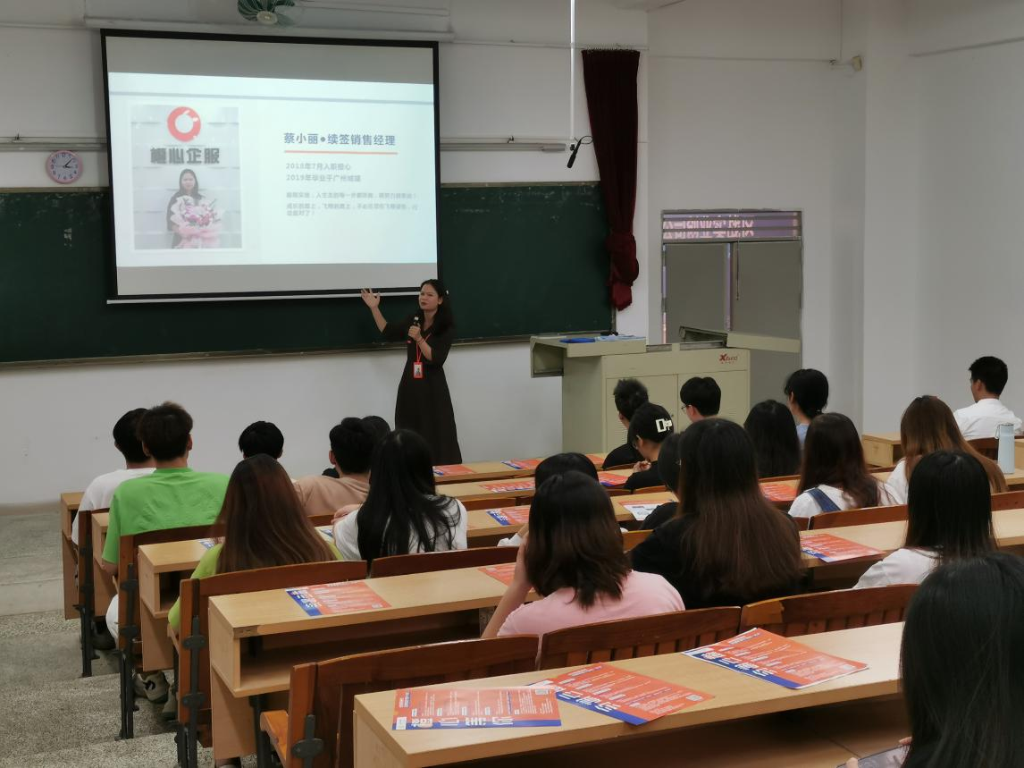 接着公司续签销售经理蔡小丽做了职场提升的建议的成功经验分享报告,蔡小丽经理是我校电子商务专业2016级学生,2018年7月入职橙心,业绩显著,是公司管理层重要骨干。蔡小丽鼓励同学们要敢想敢拼,进入社会一定要脚踏实地,人生的每一份付出都会有收获,越努力越幸运。成长的路上,飞翔的路上,不必在意你飞翔姿势,勇敢的去行动就对了。