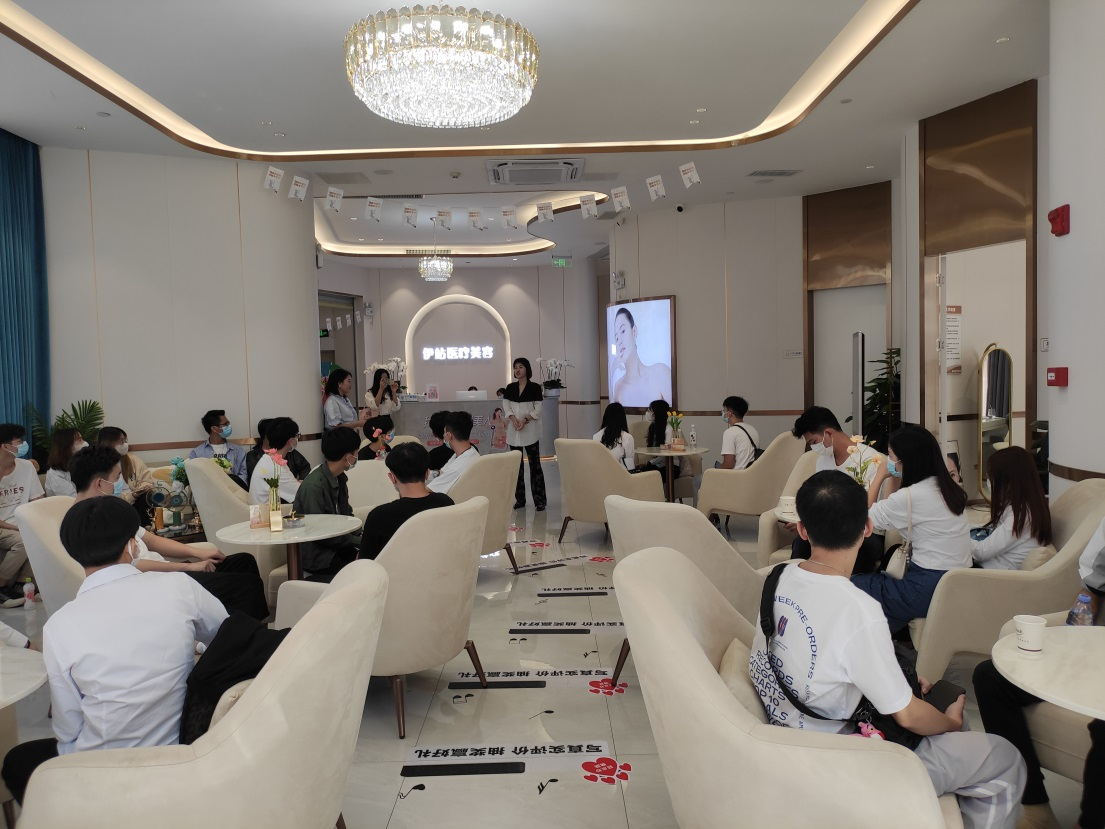 之后,参观了公司的线下店伊站,伊站是集医疗和美容一体的医疗美容院,伊站负责人详细介绍了伊站相关的业务和设备情况。