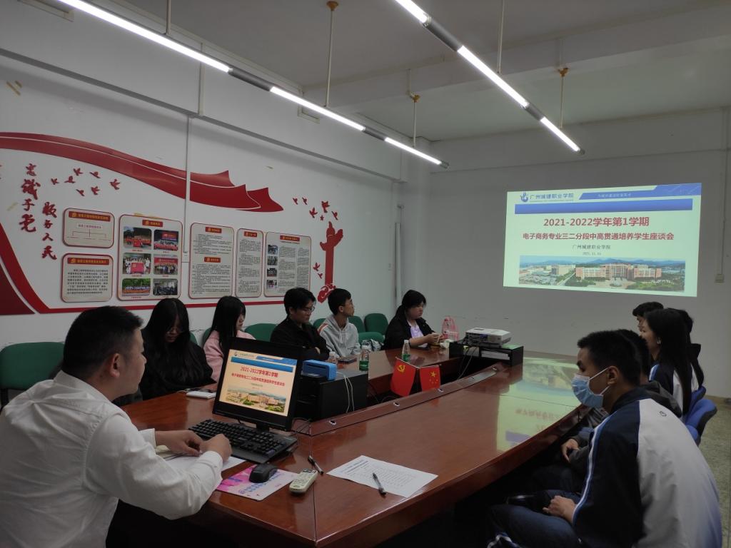 11月15日晚上,在信工财经楼2328会议室,电子商务专业召开了2021-2022学年第1学期三二分段中高贯通培养学生座谈会,21电子商务两年制班的14位学生代表参加了座谈会,座谈会由电子商务教研室主任谢金荣主持。