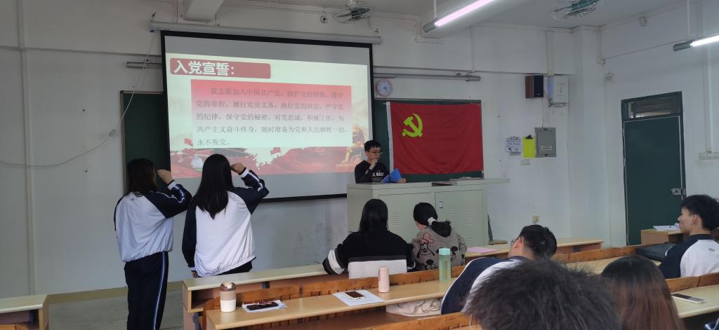 通过与会正式党员无记名投票,一致通过黄可琪、郑舒琪等2名预备党员按期转为中共正式党员,党龄从支部大会通过之日算起,谢志超宣读决议并带领同志们进行入党宣誓。