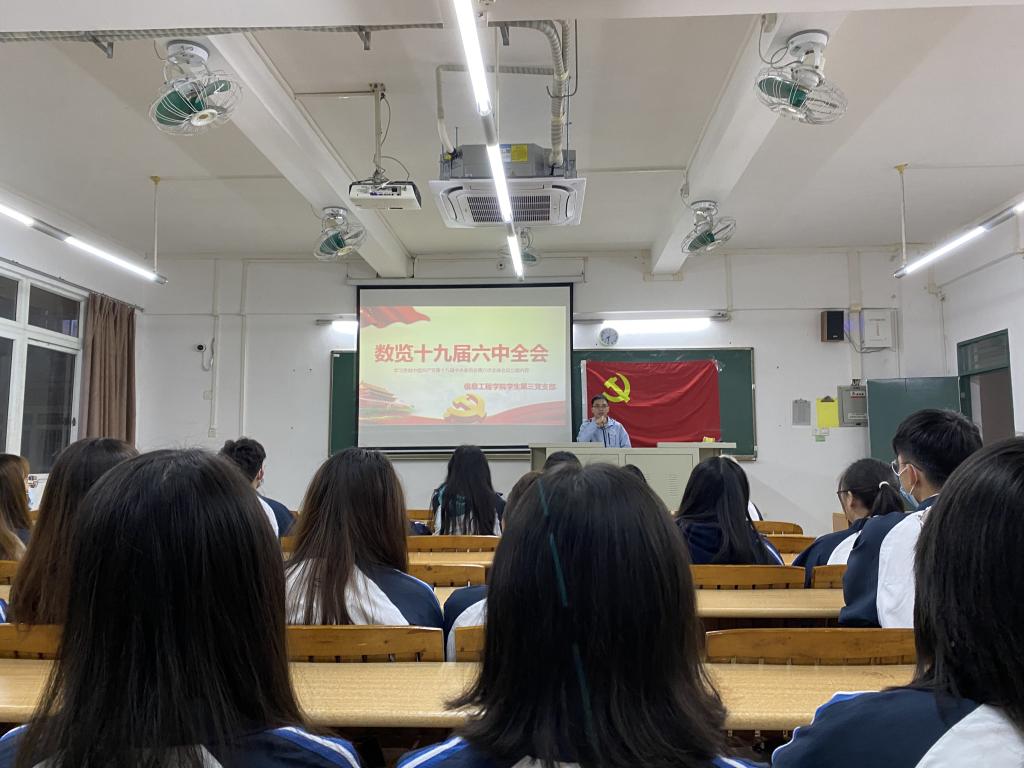 12月9日晚,ok138太阳集团古天乐学生第三党支部在信工财经楼304课室开展党的十九届六中全会精神学习会,会议由支部书记谢志超组织学习,支部预备党员与积极分子参加学习。