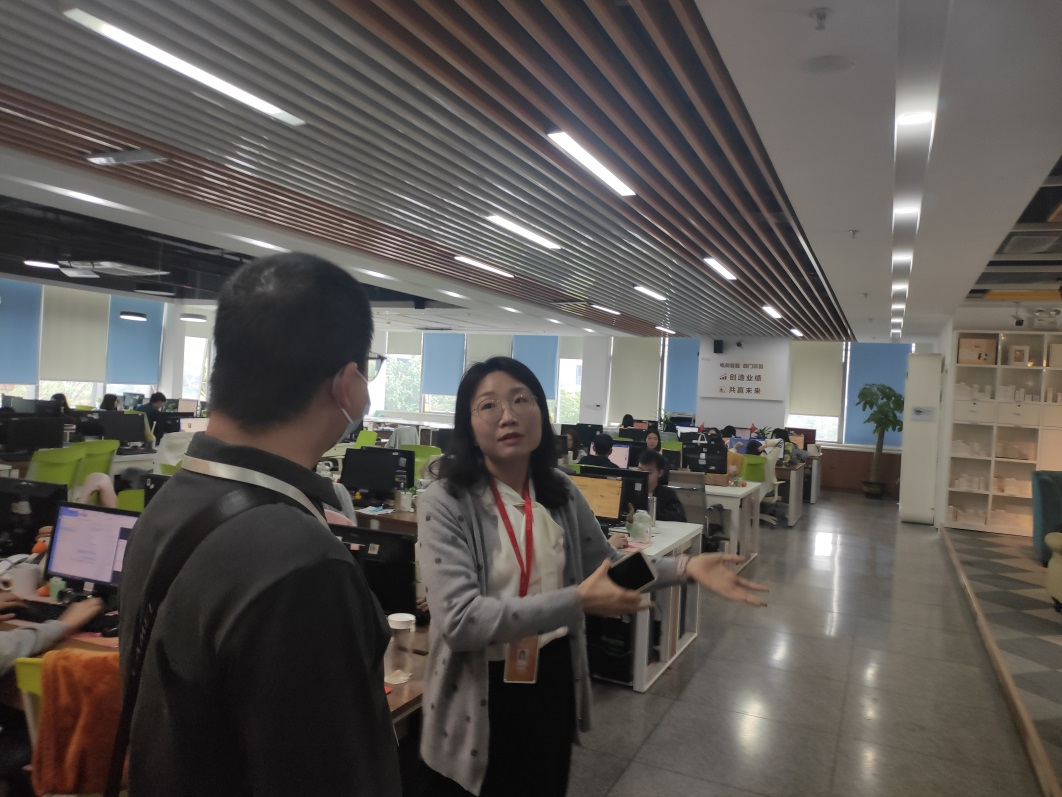 在公司人力资源经理陈德斐等人带领下,参观了公司的展览馆、运营部、设计部、客服部、产品研发和实验室及食堂,并且详细了解了各业务部门的相关情况。