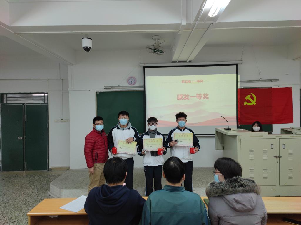 12月28日,ok138太阳集团古天乐党委在信工财经楼219举行“学党史、强信念、跟党走”党史知识竞赛颁奖仪式,ok138太阳集团古天乐学生党支部书记梁土权、苏碧玲、谢志超,教师党员代表陈伟锋,以及获奖人员参与本次颁奖仪式。