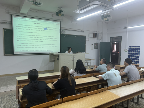 支部宣传委员黄明辉领学《习近平总书记关于加强党的作风建设的重要论述》,结合学院实际,强调党员需以“作风建设永远在路上”的清醒认识,将纠治“四风”与师德师风建设、学生思政教育深度融合,切实提升支部凝聚力和育人实效。