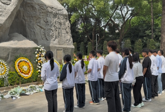在广州起义烈士陵园的庄严肃穆氛围中,全体人员整齐列队,静静伫立在巍峨的纪念碑前。阳光透过树梢洒落在纪念碑上,映照出历史的厚重与庄严。在支部书记王宇翔的带领下,大家进行了三分钟的默哀,并献上了精心准备的花束,以此表达对英勇献身的先烈们的深切怀念与崇高敬意。