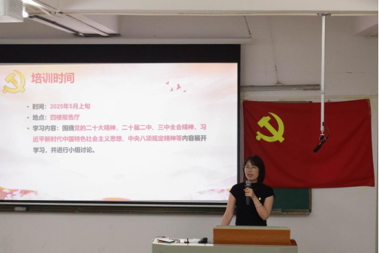随后,苏碧玲详细介绍了第三十九期党校课程安排及学习要求。本期培训以党的二十大精神,二十届二中、三中全会精神,习近平新时代中国特色社会主义思想,中央八项规定精神等为核心内容,设置专题讲座、小组研讨、实践服务等模块,并强调“考勤纪律严、思想汇报实、结业考核优”的总体要求,确保学员学有所获、行有所成。