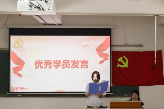 学生党员代表吴俭强以“从入党积极分子到党员的蜕变”为主题,鼓励学员们坚定理想信念:“要将理论学习内化于心、外化于行,在志愿服务、专业学习中发挥先锋作用。”