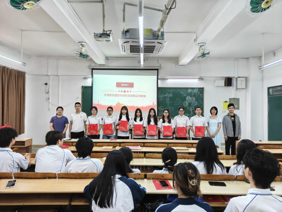 随后,支部委员为每一位毕业生党员颁发笔记本套装,烫金党徽镶嵌封面,象征信仰如灯;空白内页寓意人生新篇,激励党员书写奋斗足迹。