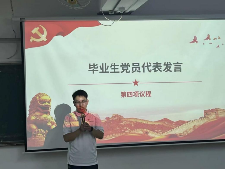 毕业生党员代表冯湘栩发言,他分享了自己在校期间的学习成长经历和对党组织培养的感恩之情。他表示,未来将继续保持党员本色,积极投身国家建设和社会发展事业,在实践中不断磨砺自我、提升自我,努力成长为堪当重任的时代新人。