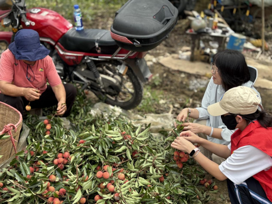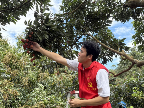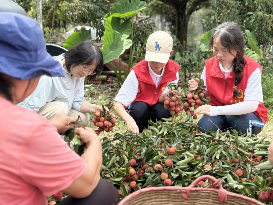在罗洞村的荔枝林中,党员们化身“农事能手”,与当地果农一同采摘荔枝。大家细心挑选红透饱满的果实,学习采摘技巧,在烈日下挥洒汗水,亲身感受“汗滴禾下土”的辛劳。采摘过程不仅是一次劳动体验,更是对“为人民谋幸福”初心的生动践行,让党员们深刻体会到农业生产的不易。