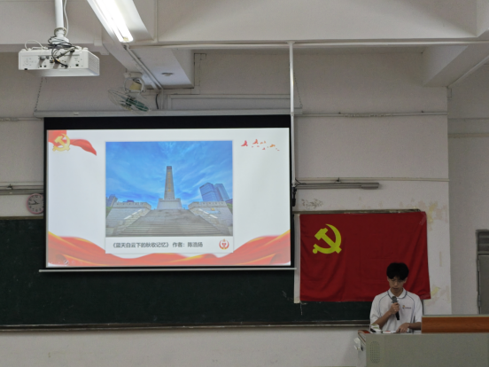 优秀作品分享环节,陈铭淼、吴苑、卢森红、陈浩扬等4名获奖者走上台前,通过饱含深情的摄影作品,分享其创作背后的故事与思考。作品题材丰富多样,既有记录校园生活点滴的温情瞬间,也有捕捉社会志愿服务、科技创新实践的动人画面,更有展现祖国壮美山河与时代发展脉搏的宏大视角。镜头所及之处,无不生动诠释了“青春献礼,强国有我”的深刻主题,展现了我院学子积极向上、心系家国的责任担当,引发在场师生的强烈共鸣。
