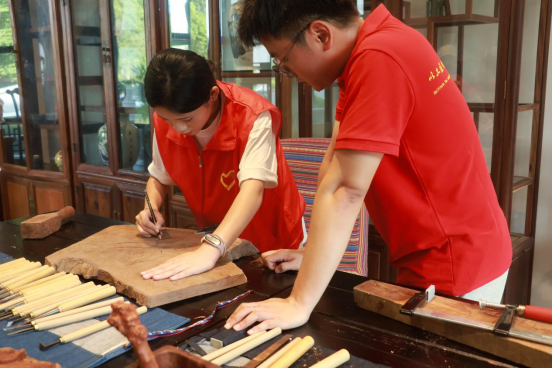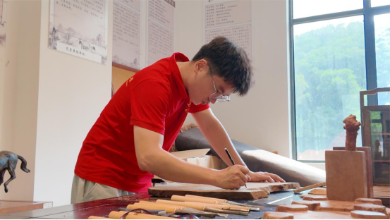 在弥漫着木香的匠人工坊内,突击队成员细致拍摄了如何将果农废弃的虬曲荔枝木料,通过选材、构思、粗坯、精雕、打磨等工序,神奇地转化为祥云瑞兽纹的精美艺术品(如香薰炉、笔筒、摆件)。学生们不仅用镜头记录了“七分天然三分雕工”的创作理念,更在传承人手把手的指导下,尝试握刀运力,亲身感受荔枝木的坚硬质地与雕刻的艰辛乐趣。每一刀刻下的木屑,都被视为传统技艺与现代青年碰撞的火花。