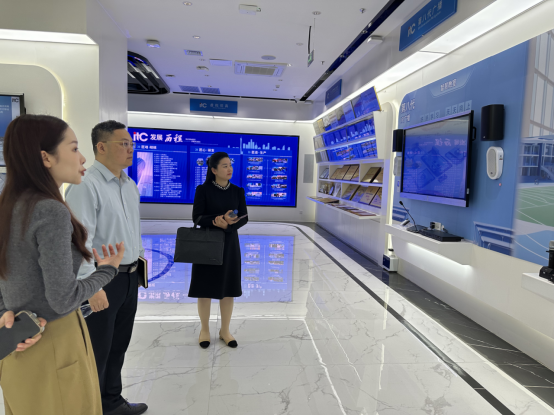 交流活动依照既定议程有序推进。在赵主管的引领下,我校走访团队先后参观了企业展厅,详细了解广东保伦电子股份有限公司的发展历程、核心业务、技术创新成果及行业应用场景。该公司成立于2008年,是一家专注于研发和生产声、光、电、视讯系统,并提供系统性整体解决方案的高新技术企业。其拥有五大生产基地、独立营销物流中心及多个研发中心,在职员工超6000名,主导制定了多项行业团体标准,产品广泛应用于教育、政府机关、文体场馆等多个领域,综合实力强劲,发展前景广阔。参观过程中,双方就企业技术迭代方向、岗位设置标准等内容进行了初步交流,为后续合作奠定了基础。