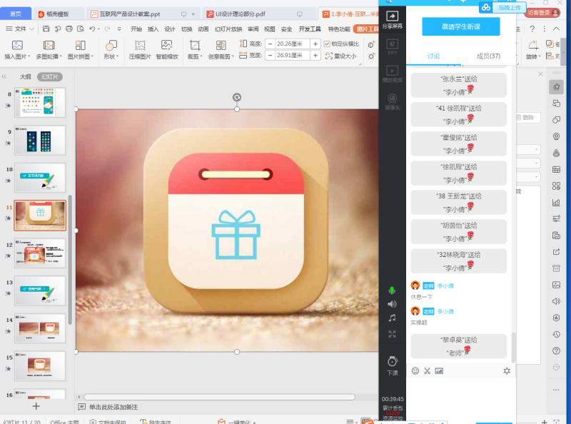 李灿彬同志表示:直播比录播有优势,可以掌握学生的学习进度,此授课方式可以展示授课内容,同时能够与学生互动,犹如现场授课;网络授课与传统授课最大的区别在于距离,如韩平教授所说,需要创造“在场感”,缩小“距离感”,这是上好网络课程的关键;如何创造“在场感”,需要增加互动频率,如提问、抽查等方式,尽可能做到全覆盖,让每位学生都要参与。加大平时分比例,需要实时登记学生平时成绩,提高学生学习积极性。