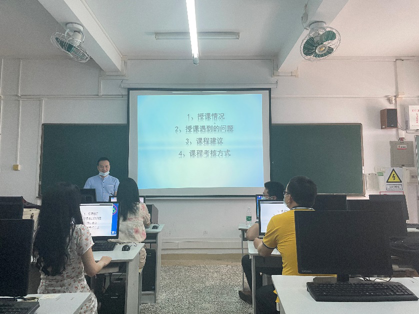 会议中,课程组教师蔡小宇、刘宏烽、李泳洁及林梦茹分别针对各自所讲授班级出现的问题以及学生的整体表现进行介绍,并从课堂授课情况、课程考核方式以及课程优化建议三个方面进行了深入的研讨。