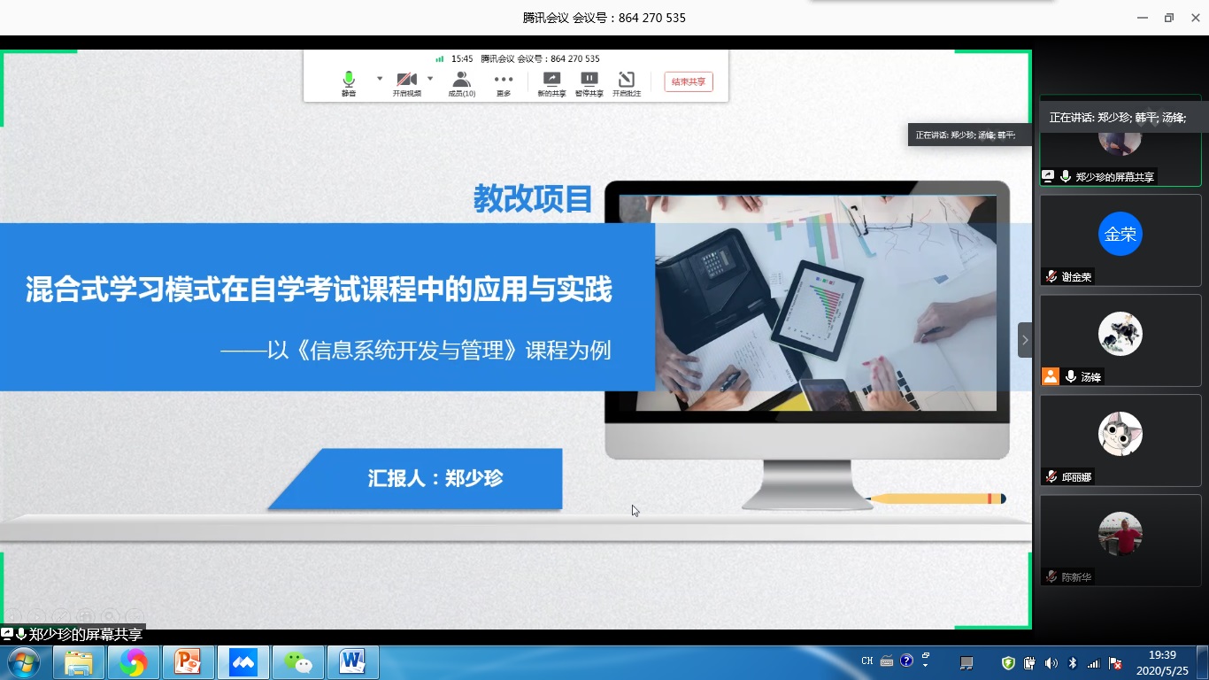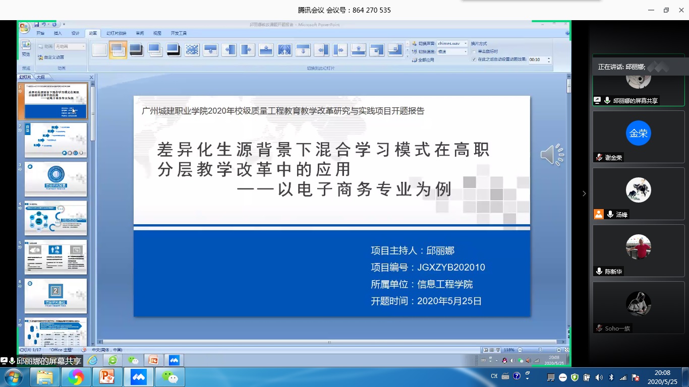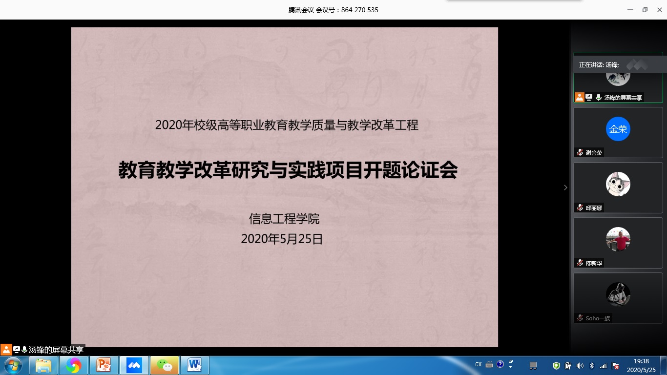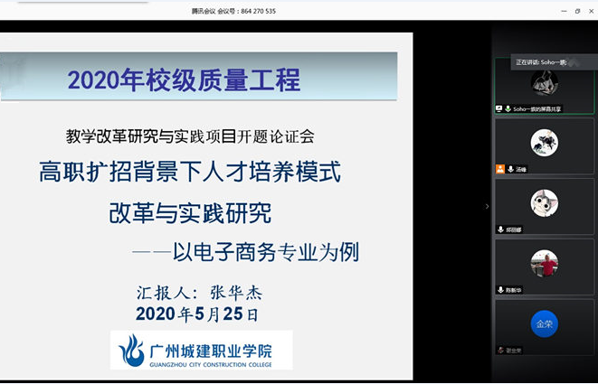 为更好地推进学院教研教改项目工作开展,提升教师科研工作水平。5月25日19:30,ok138太阳集团古天乐通过腾讯会议平台召开校级质量工程教育教学改革研究与实践项目开题论证会,学院教授陈新华、韩平,副院长李灿彬等10位教师参加论证会,会议由副院长汤锋主持。