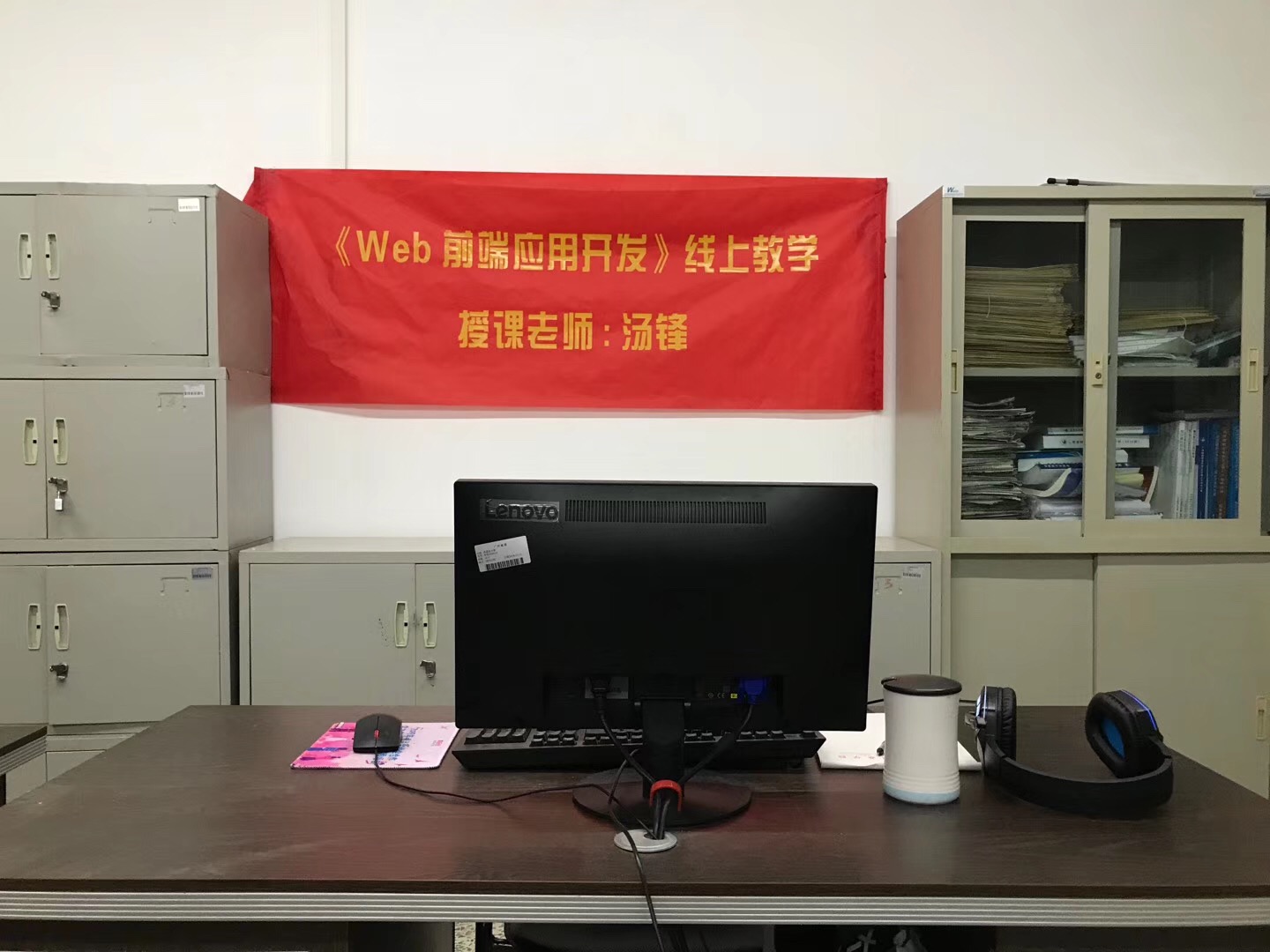 汤锋老师教学、行政双肩挑,线上教学率先直播,当学生反映直播教学声音不清晰时,自己立刻去商场买了个新麦;当家里手提电脑在上课损坏时,又立马换上台式电脑并配置了新的摄像头,从而确保了线上教学没中断。