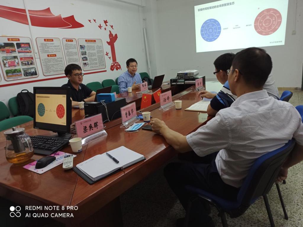 会谈中,曹春华介绍了学院办学情况及建设思路。汤锋介绍了目前学校“1+X”证书试点工作情况、软件技术专业人才培养与建设思路。陶铭介绍了华为开发者联盟职能与服务和第四批“1+X”华为认证证书开展情况。