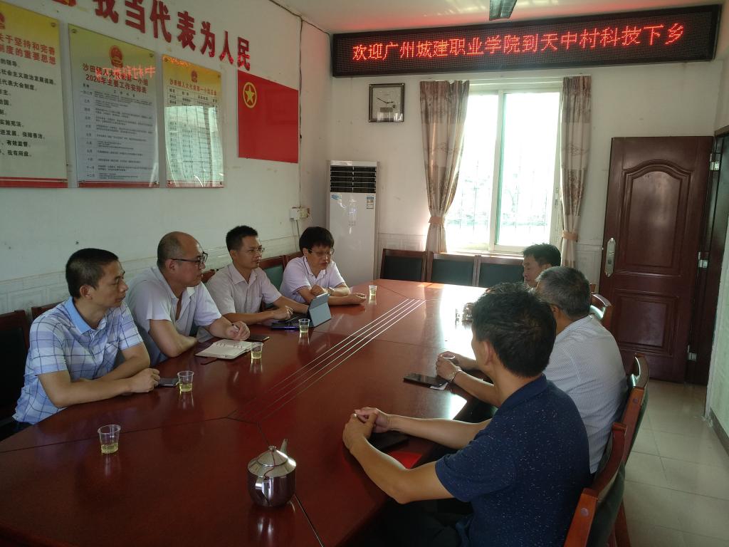 9月4日下午,我校广东省农村科技特派员团队ok138cn太阳集团529科技处处长鲁五一、ok138太阳集团古天乐副院长李灿彬、ICT教研室主任禤东桦、电子商务教研室主任谢金荣、范新刚老师等一行五人再次前往韶关市新丰县沙田镇天中村调研,受到天中村驻村第一书记周锐勤、村支书潘法律等人的热情接待。