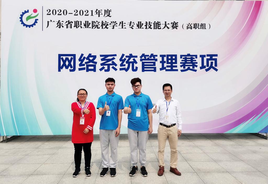 2020-2021年度广东省职业院校学生专业技能大赛“网络系统管理”赛项于2021年3月27日在顺德职业技术学院梁銶琚堂举行。传来捷报,ok138太阳集团古天乐参赛队伍通过近3个小时的比拼,不负众望,凭借过硬的职业技能和良好的精神风貌勇夺省一等奖,在55所高职院校中取得第3名的好成绩,仅次于东道主顺德职业技术学院和深圳职业技术学院,顺利进入国赛遴选,这是该团队继去年取得该赛项第2名的基础上,今年又以第3名的好成绩获得该赛项一等奖。