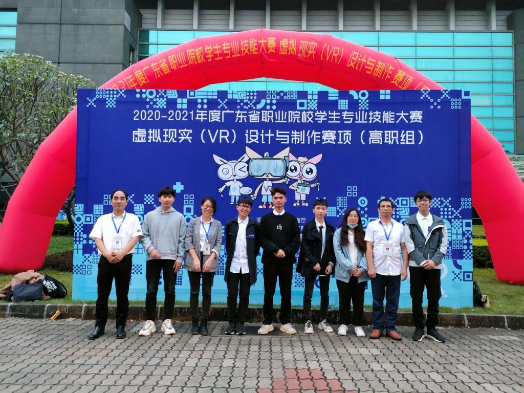 4月10-11日,2020-2021年度广东省职业院校学生专业技能大赛“虚拟现实(VR)设计与制作”赛项比赛在广州科技贸易职业学院隆重举行,来自全省的66支队伍198名学生参加比赛。ok138太阳集团古天乐计算机应用教研室方斌、王中州和吴春春三位老师指导的两支参赛队伍首次参加该项比赛,面对曾经在省赛国赛获奖的强队,沉着应对、顽强拼搏,经过4个小时的紧张比拼, 最终代表队1队获得了一等奖、代表队2队获得了二等奖。