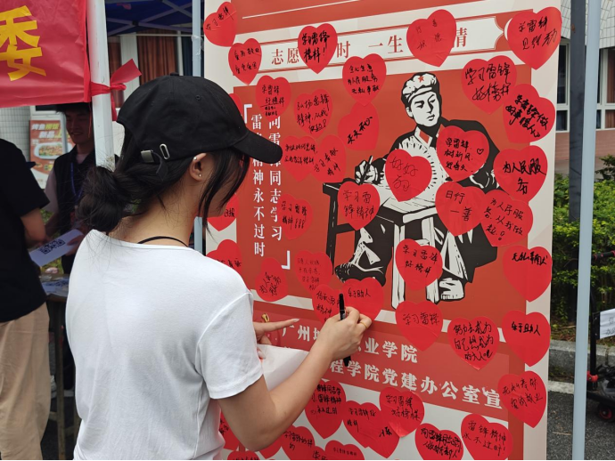 活动现场设立的“雷锋寄语墙”格外醒目,同学们纷纷提笔,写下自己的暖心寄语“志愿一小时,一生公益情”“以吾辈之青春,传雷锋之精神”“雷锋精神永不灭,点滴善举暖人心”……一句句真挚的话语既表达了青年学子对雷锋精神的崇高敬意,也展现了他们将奉献精神内化于心、外化于行的坚定决心。