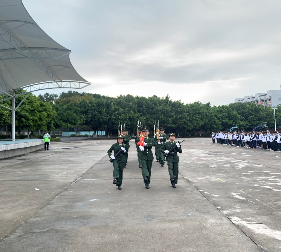 早上7点,朝阳初升,国旗护卫队迈着铿锵有力的步伐走向升旗台,振臂一挥,鲜艳的国旗迎着朝阳在国歌中徐徐升起。