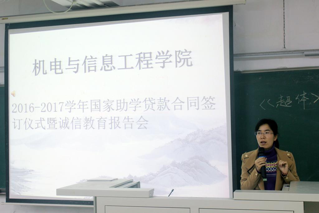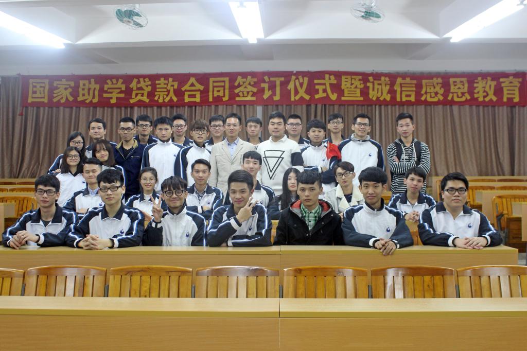 为了关爱我院学子,激励广大学子刻苦奋斗。11月10日晚,机信学院在信工财经楼319课室举行了国家助学贷款合同签订仪式暨诚信感恩教育会议。参加此次会议的有机信学院副院长王鲜、学工办老师谢凯、赖增哲以及全体贷款学生。