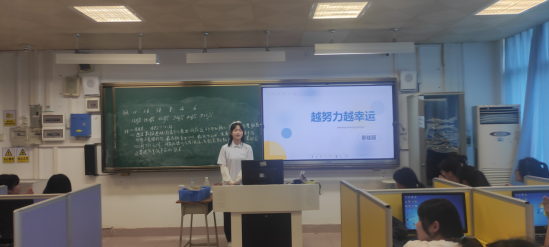 为发挥榜样示范作用,帮助师弟师妹们树立正确的学习目标,激发学习热情,提升自信心。在两校领导老师的沟通协调下,苏佳丽同学以题为《越努力越幸运》给广州市黄埔职业技术学校三二分段中高衔接电子商务专业学生作了激情演绎的学习演讲报告。她从个人情况、中职时期的学习和生活、高职阶段的学习和生活、技能竞赛参赛情况和自我成长与收获等方面做了详细了介绍,鼓励师弟师妹们要认真学习,多学习别人的成功经验,幸运只留给有准备的人。