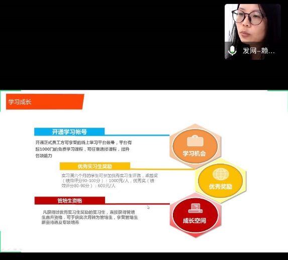 为贯彻落实国家、广东省关于开展毕业生就业创业工作的文件精神,切实解决毕业生就业工作。5月13日上午,ok138太阳集团古天乐联合上海发网供应链管理有限公司举行线上网络专场招聘会。上海发网供应链管理有限公司人事总监赖海燕、人事主管曾志芳参会并进行招聘宣讲。