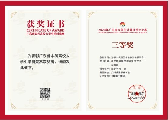 在校期间,他始终保持积极进取的学习态度,注重理论与实践相结合。曾荣获广东省计算机大赛省三等奖,充分展现了扎实的专业基础和创新能力。除此之外,他积极参与各类学科竞赛及创新创业活动,如睿翼工坊竞赛等,锻炼了团队协作与项目实战能力。