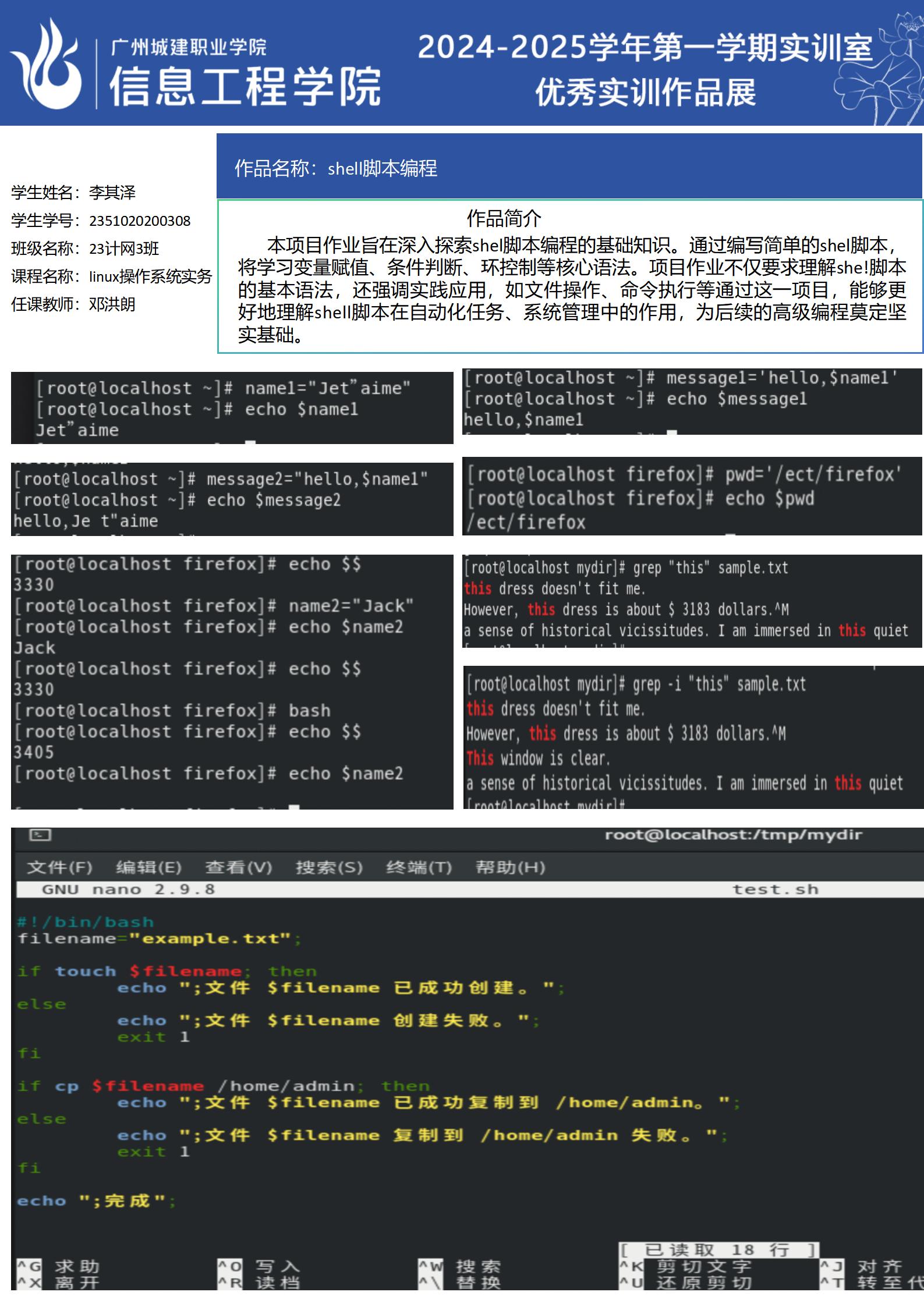 ok138太阳集团古天乐2024-2025学年第一学期实训室优秀实训作品展(2312 云计算与网络运维实训室)