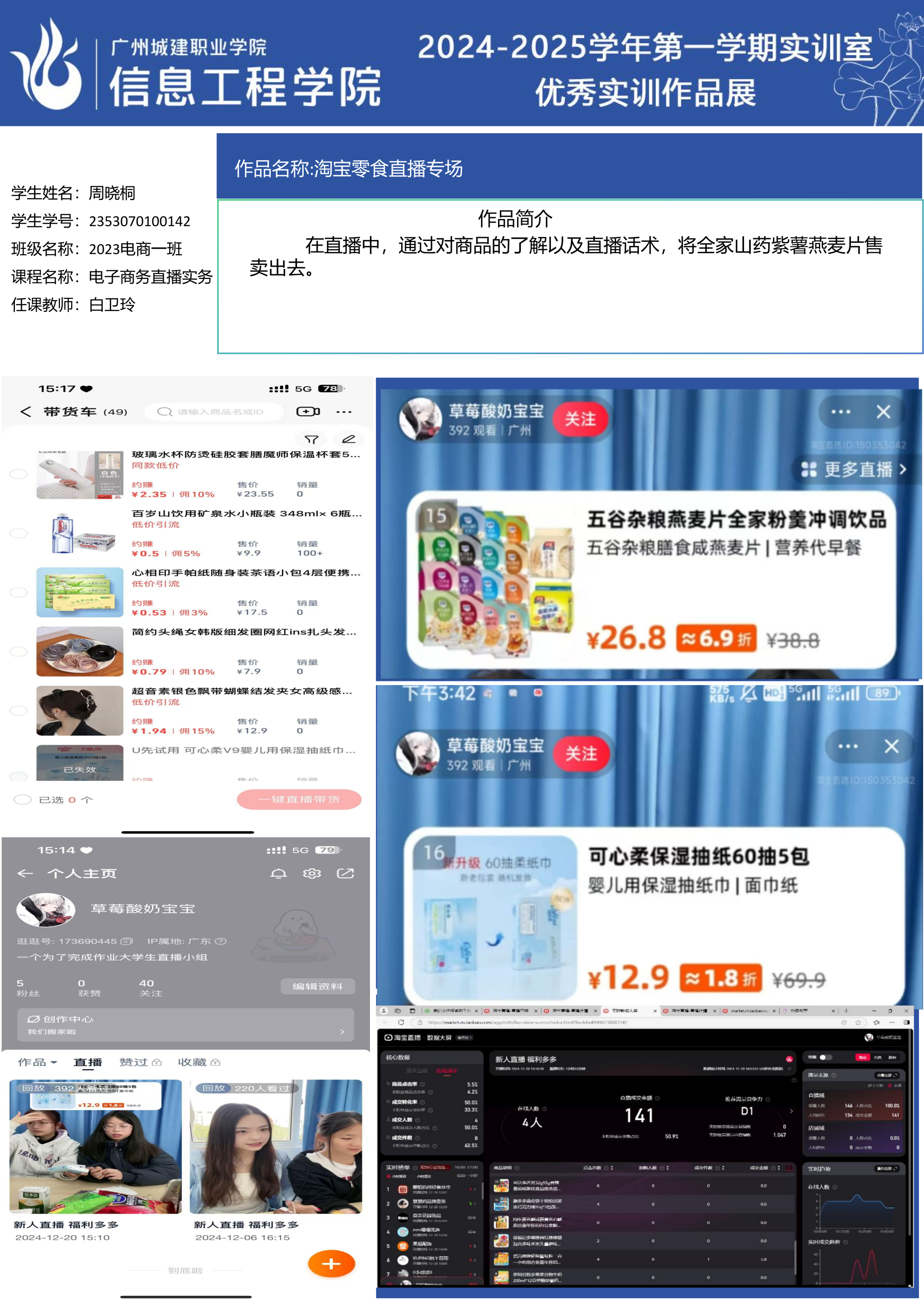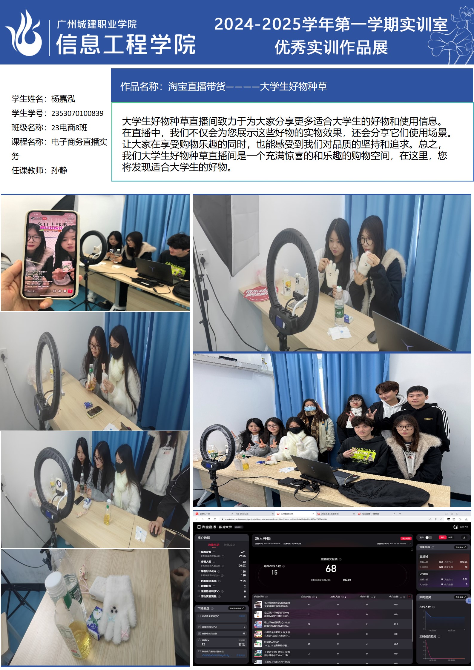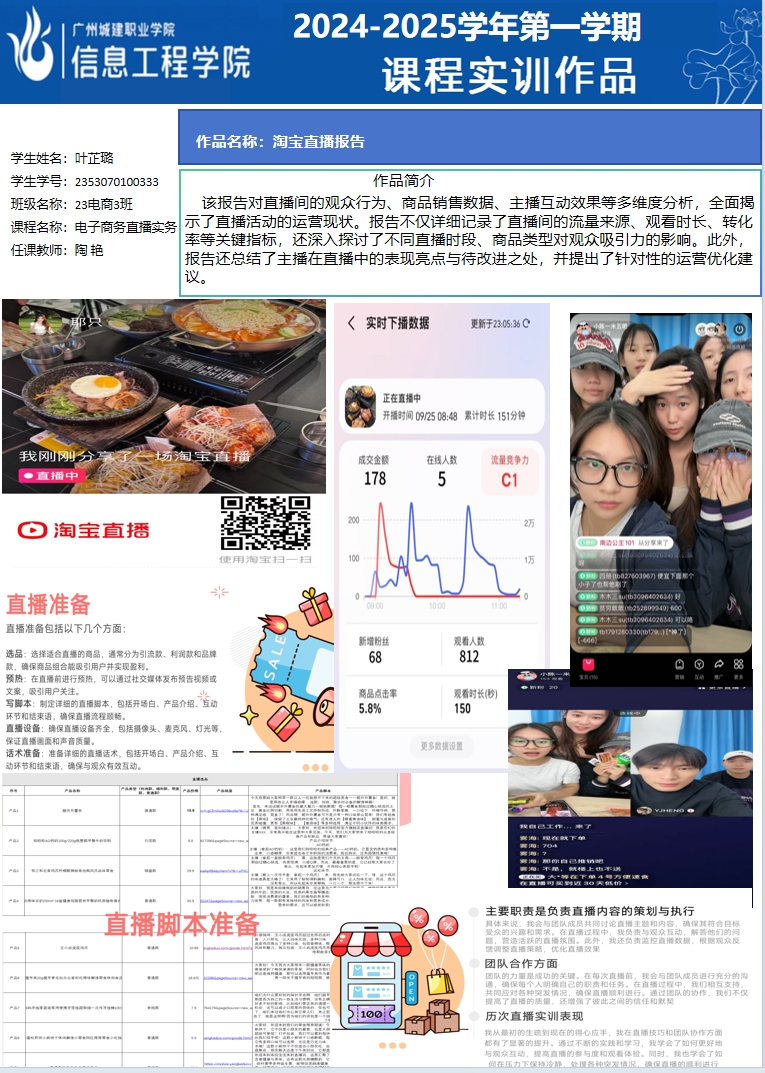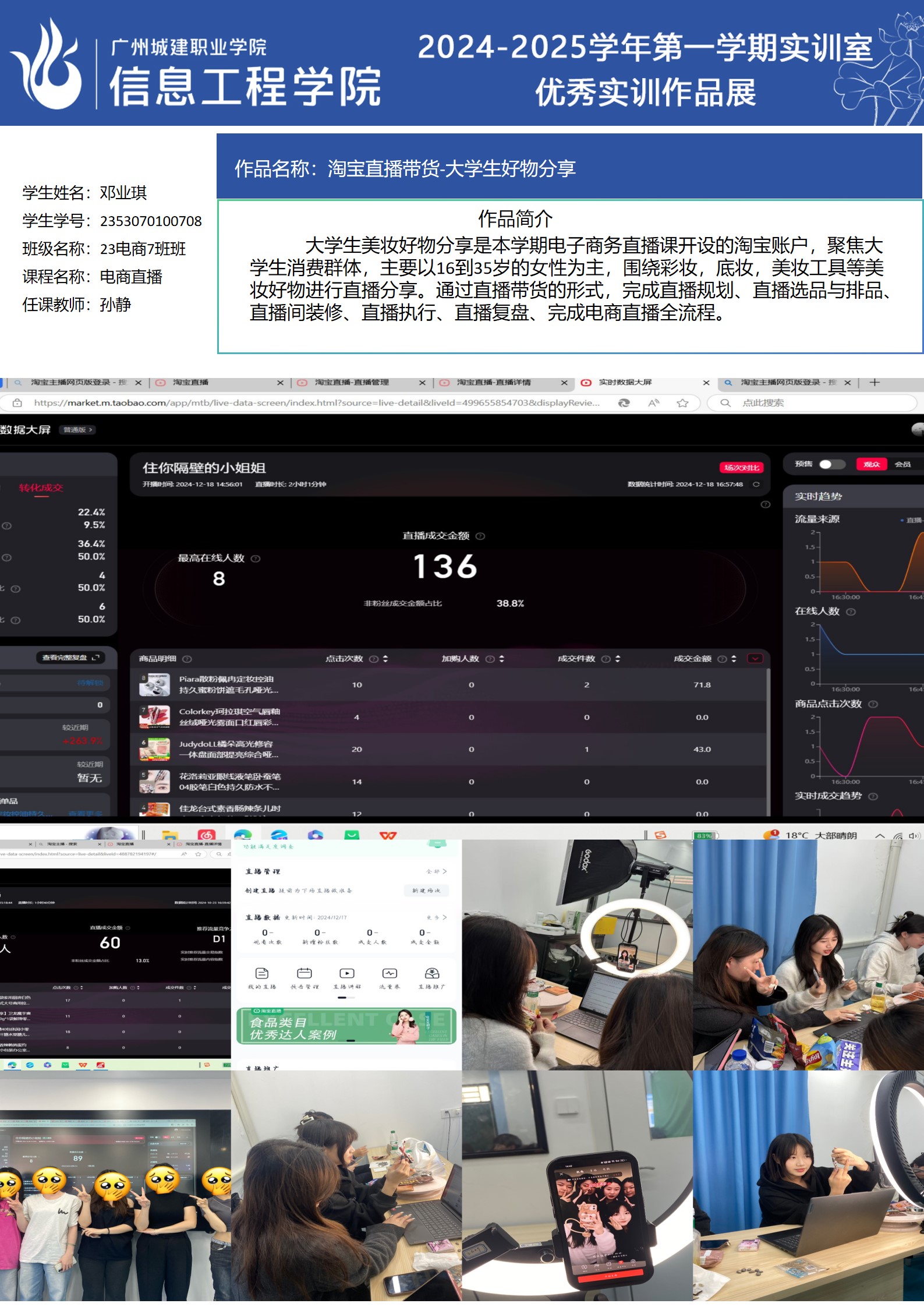 ok138太阳集团古天乐2024-2025学年第一学期实训室优秀实训作品展(2609 直播电商综合实训室)