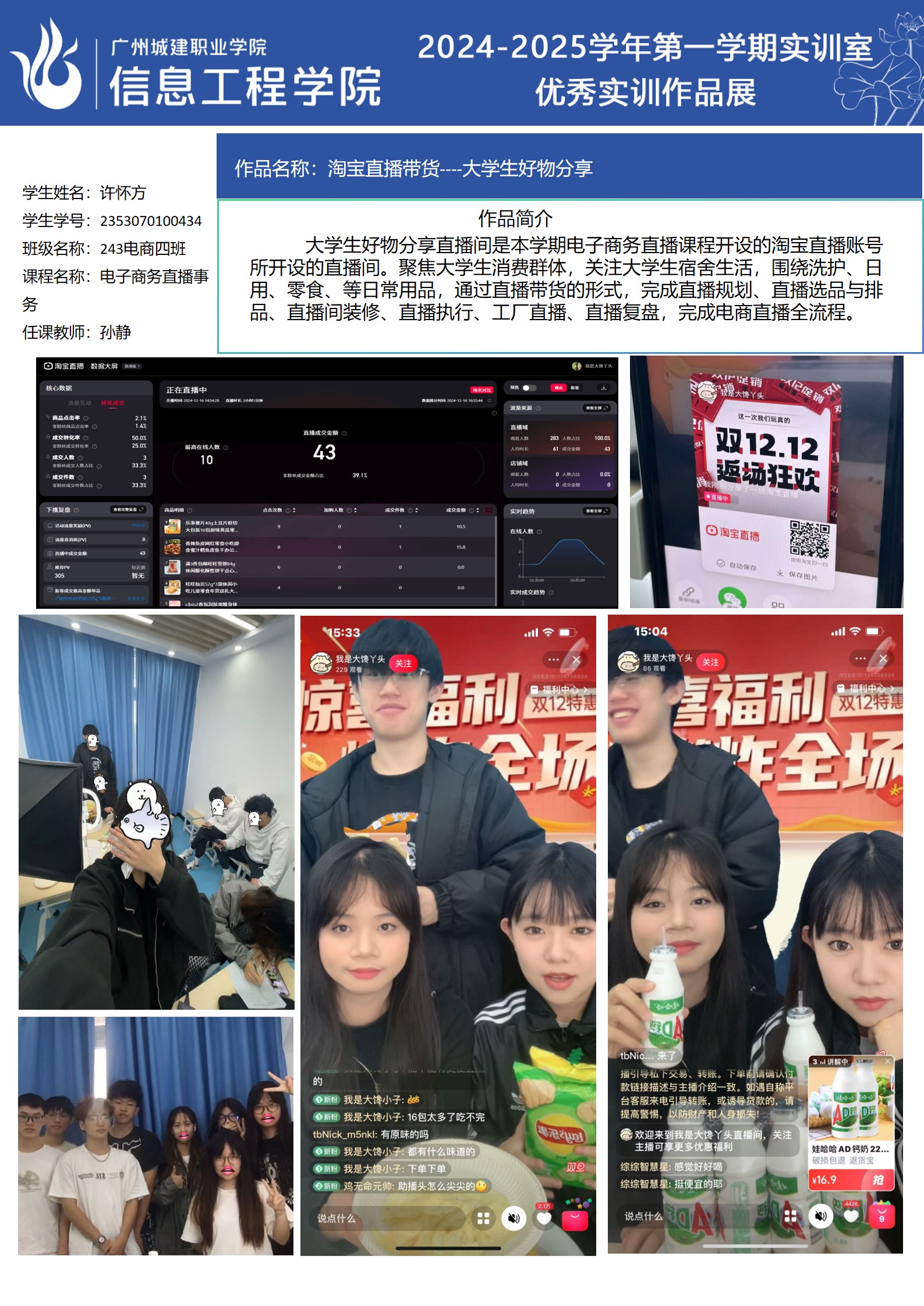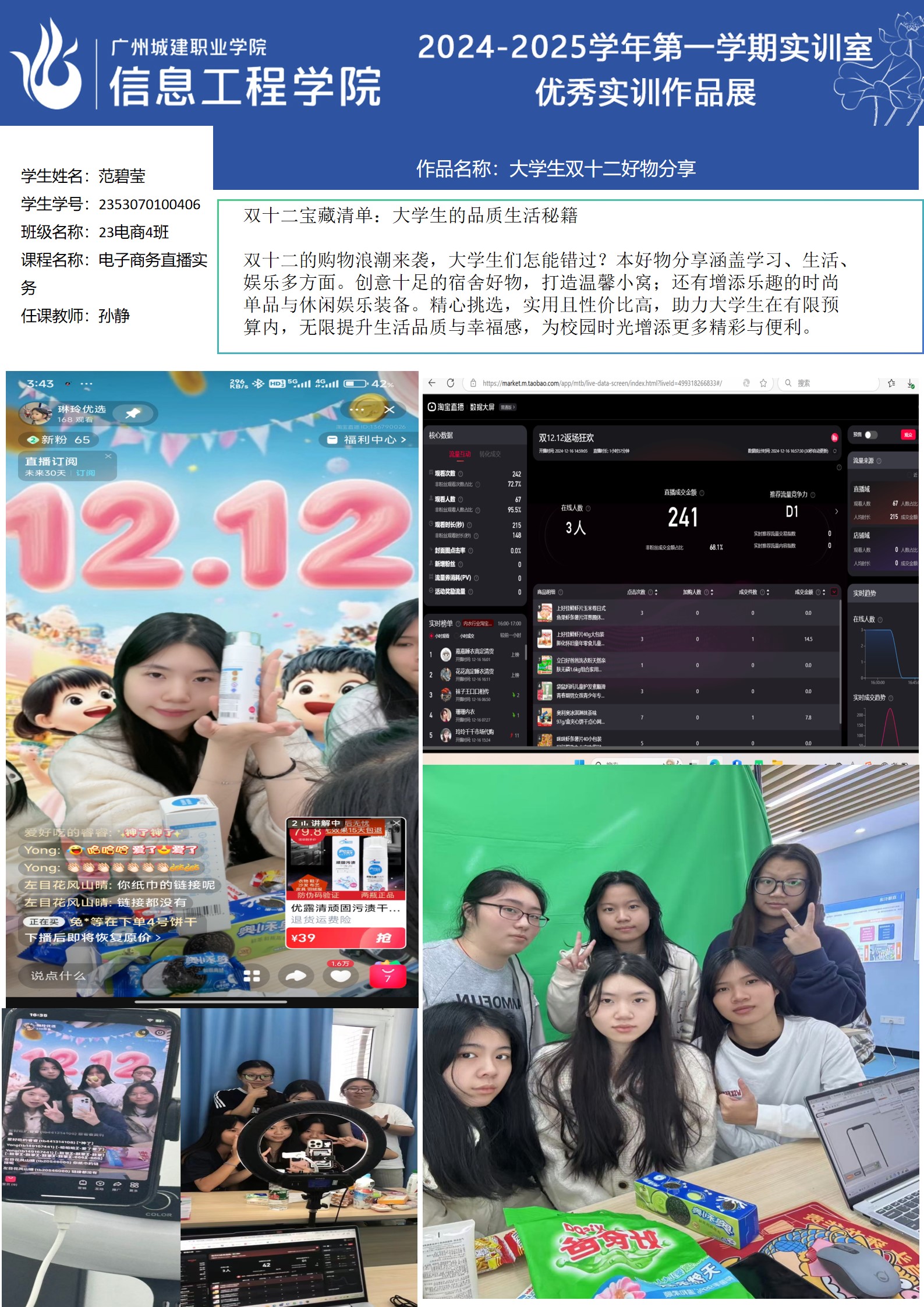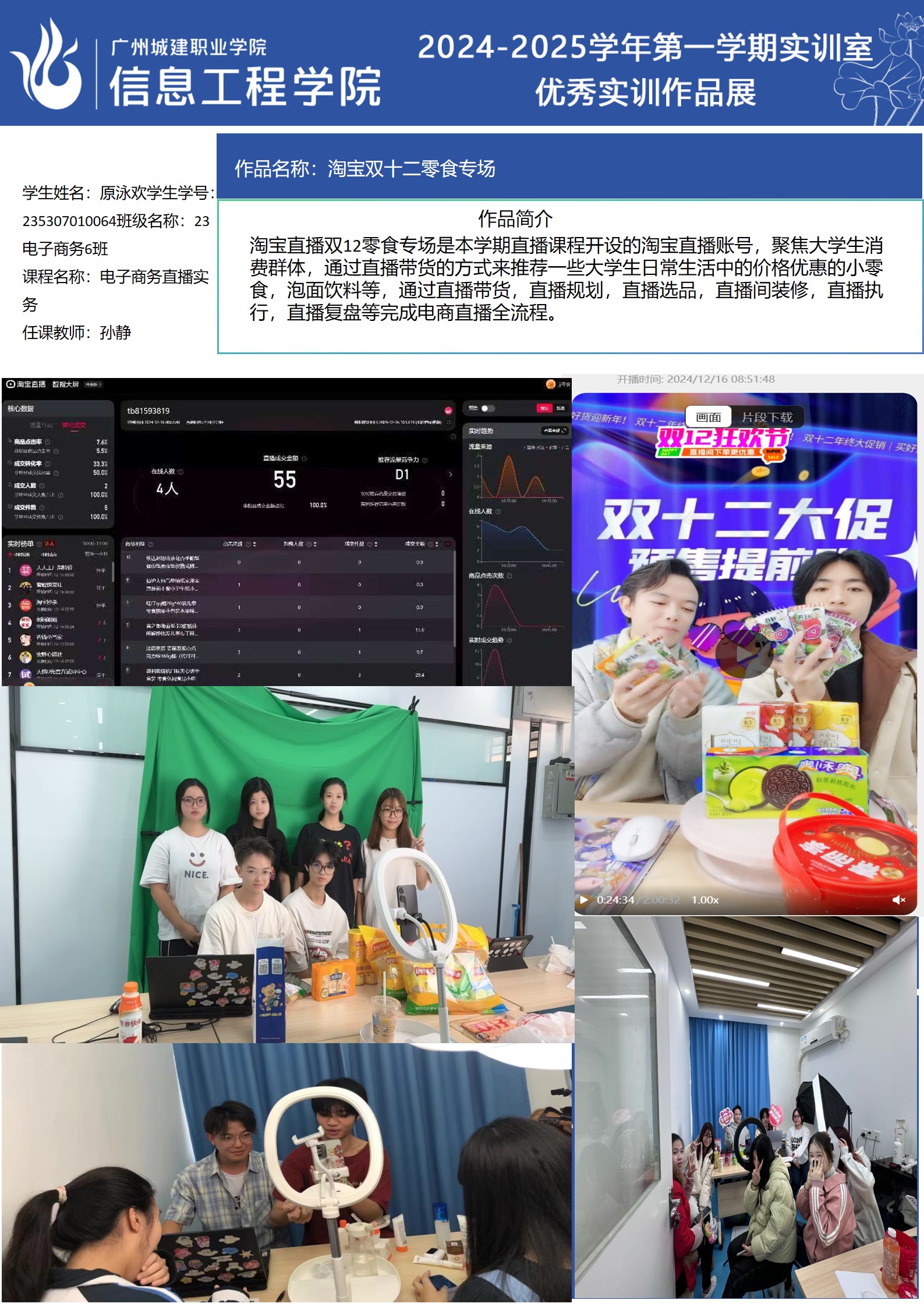 ok138太阳集团古天乐2024-2025学年第一学期实训室优秀实训作品展(2609 直播电商综合实训室)