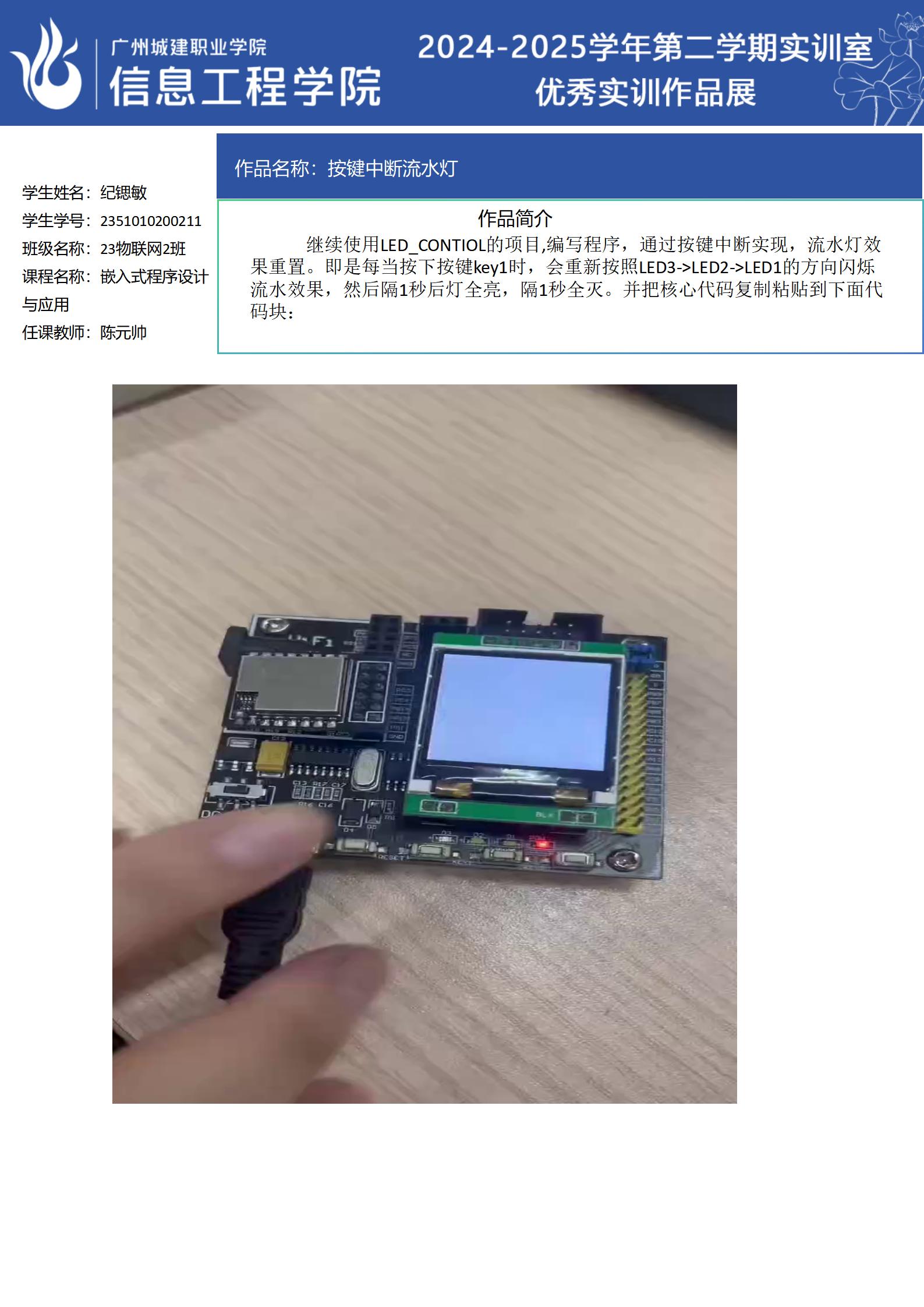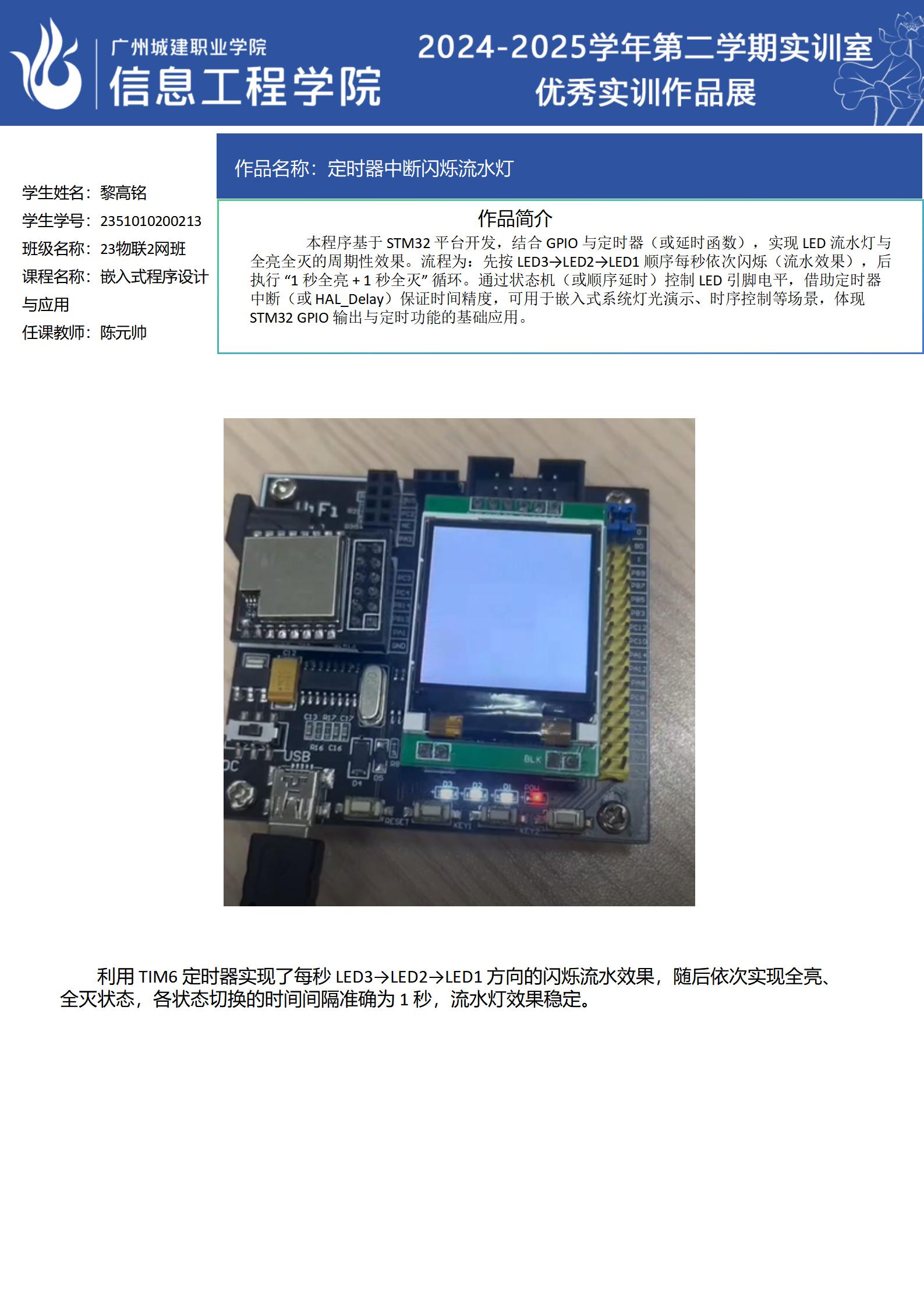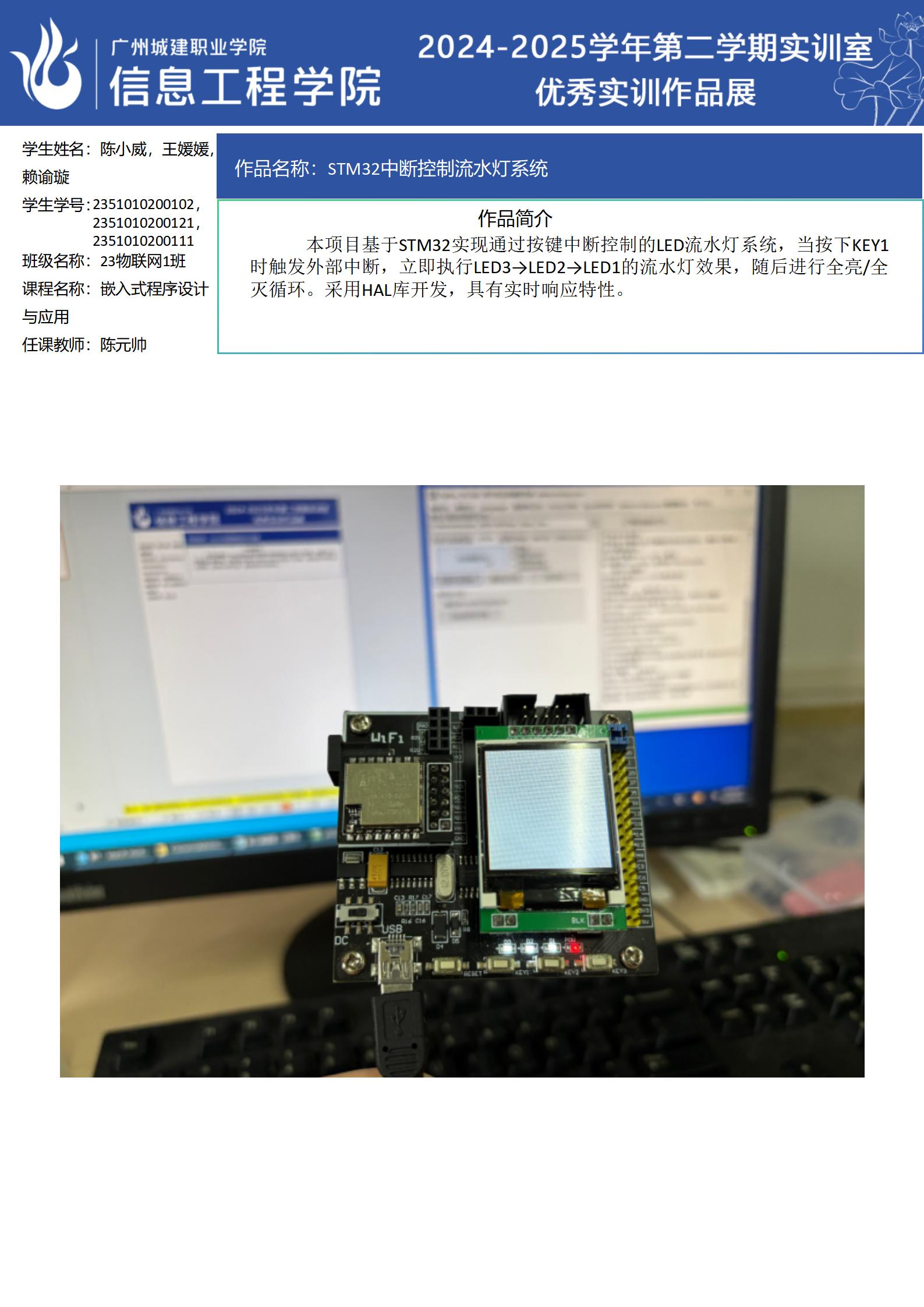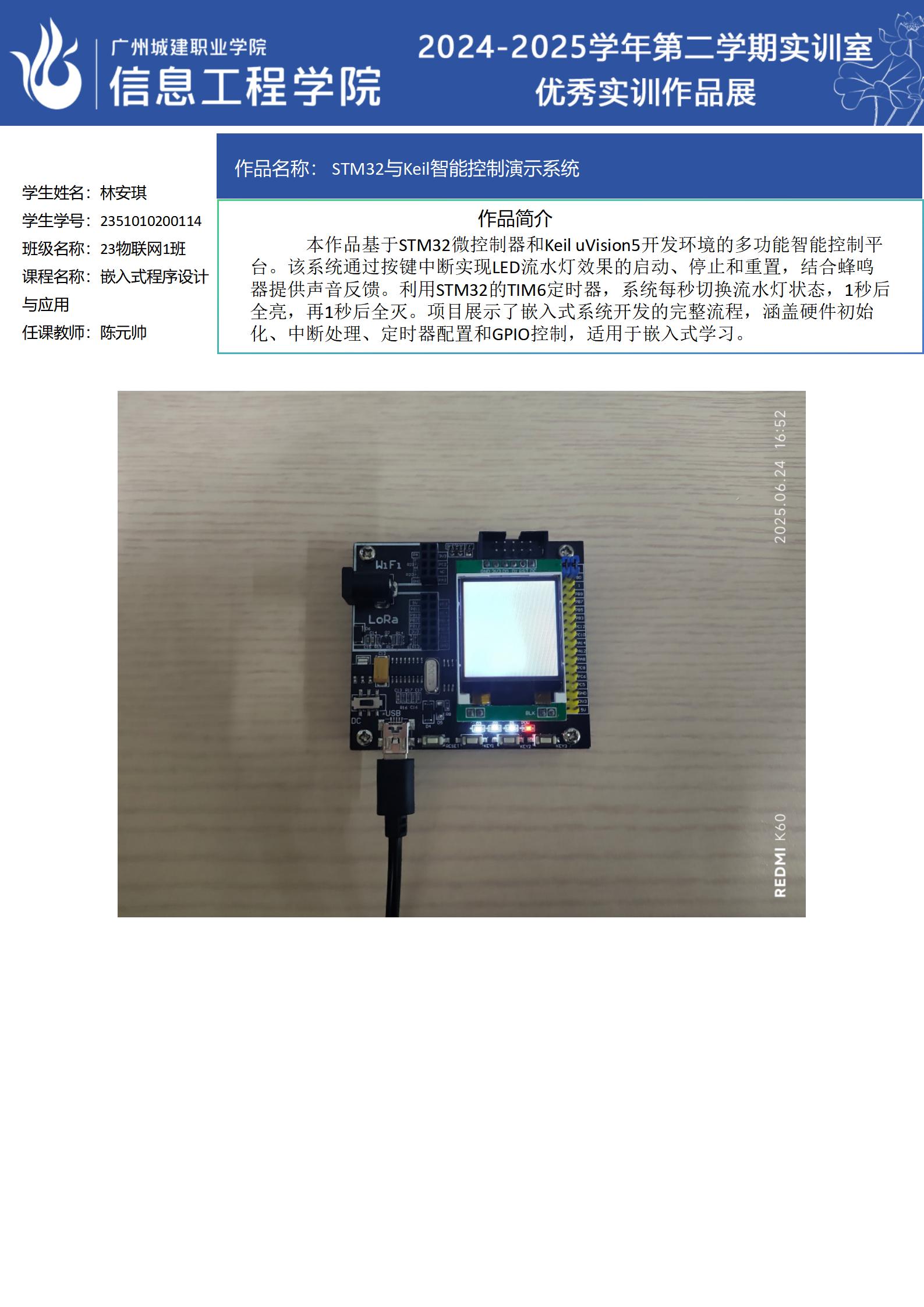 ok138太阳集团古天乐2024-2025学年第二学期实训室优秀实训作品展(2411 物联网应用技术实训室)
