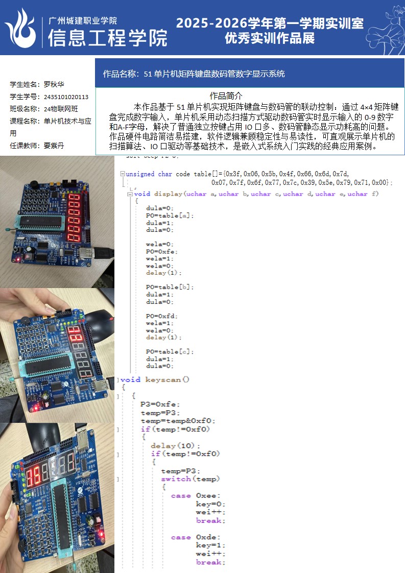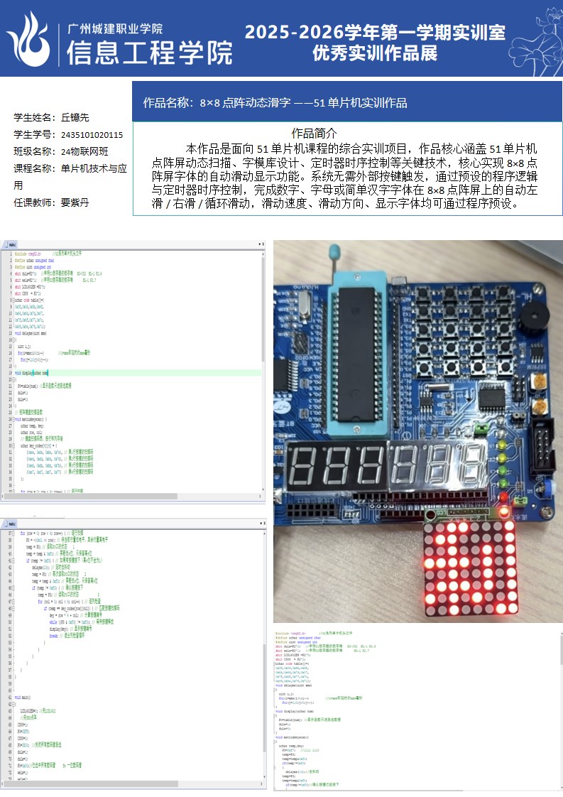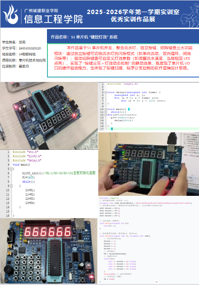 ok138太阳集团古天乐2025-2026学年第一学期实训室优秀实训作品展(2411 物联网应用技术实训室)