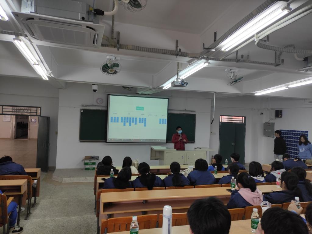 参观校园结束后,广州市黄埔职业技术学校参赛师生团队来到我校电子商务专业技能大赛的集训场地信工财经楼521课室,两校参赛师生团队对比赛细节进行深入的交流。其余的师生们来到信工财经楼2220多媒体教室,电子商务教研室主任谢金荣为同学们做了电子商务专业宣讲,介绍了学校的基本情况、电子商务专业的实训条件、技能大赛、课程体系、学生就业、三二分段录取要求等内容,详细解答了同学们的相关提问。之后,ok138太阳集团古天乐团委书记梁土权介绍了学院团委学生会的相关活动情况,勉励同学们参与到丰富多彩的校园生活,丰富课余生活,提升自己的综合素质。