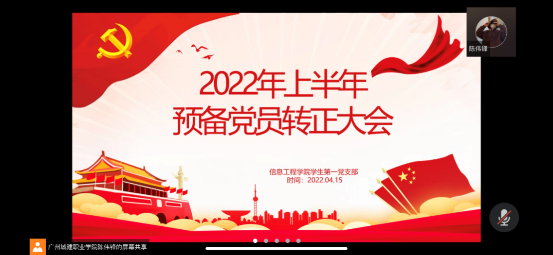 为进一步加强党员队伍建设,规范党员发展流程,提高党组织的创造力、凝聚力和战斗力,2022年4月15日,我院学生第一党支部以线上的形式召开了预备党员转正会议。学生第一党支部全体党员出席本次会议。会议由陈伟锋进行主持,共有奥芝鑫、林璇、谢远康等13位预备党员进行预备党员转正。