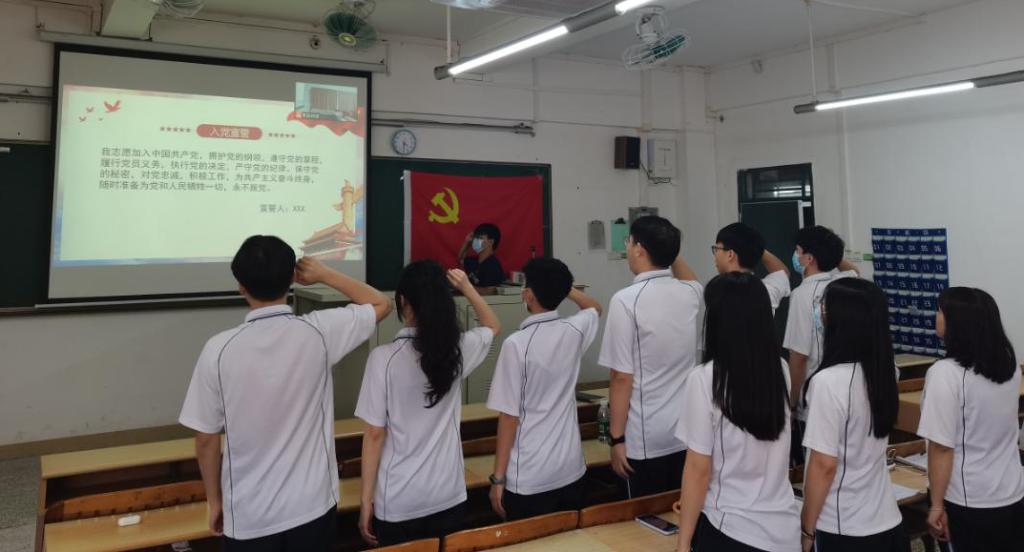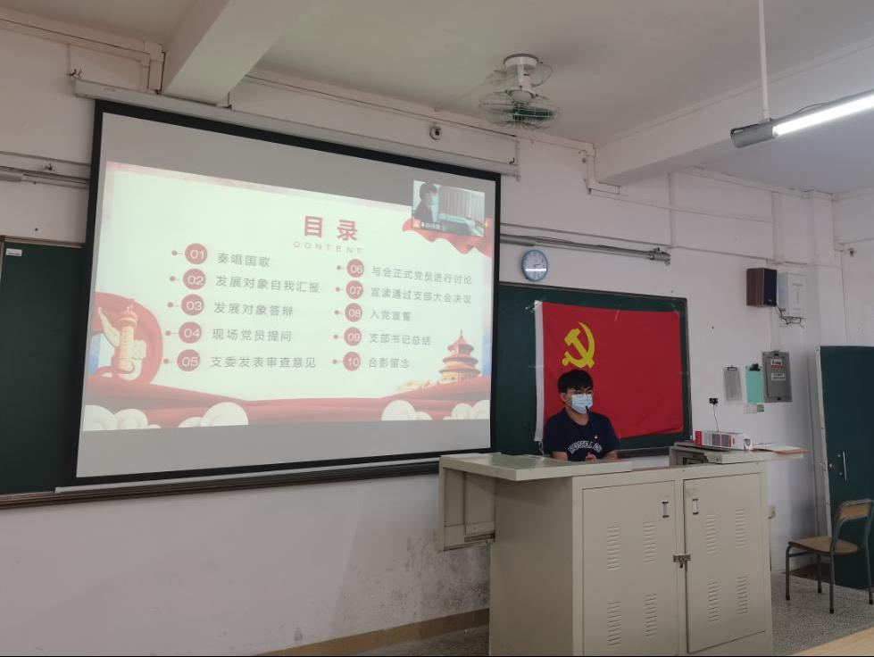 经与会正式党员投票表决,通过郑瑞琪等5位重点发展对象吸收为预备党员,陈伟锋宣读了决议并进行入党宣誓。