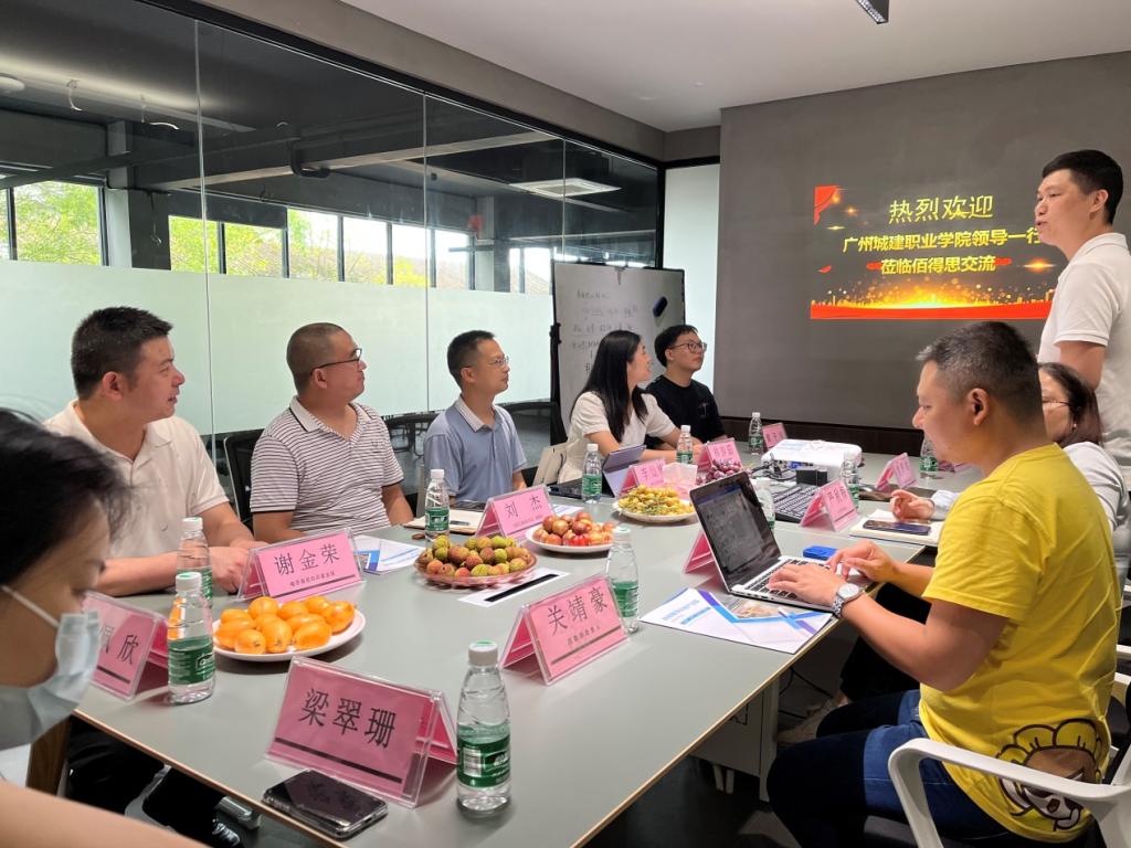 黄辉雄介绍了公司的发展历程、企业文化及业务情况,并邀请城建毕业生分享工作心得和体会。校企双方就未来开展线上招聘会、订单班、直播项目实训,以及如何通过校企合作项目挖掘人才等问题展开了初步的沟通。企业方表达了与学院进一步深化合作的诚意与期盼,并肯定学院的人才培养质量。