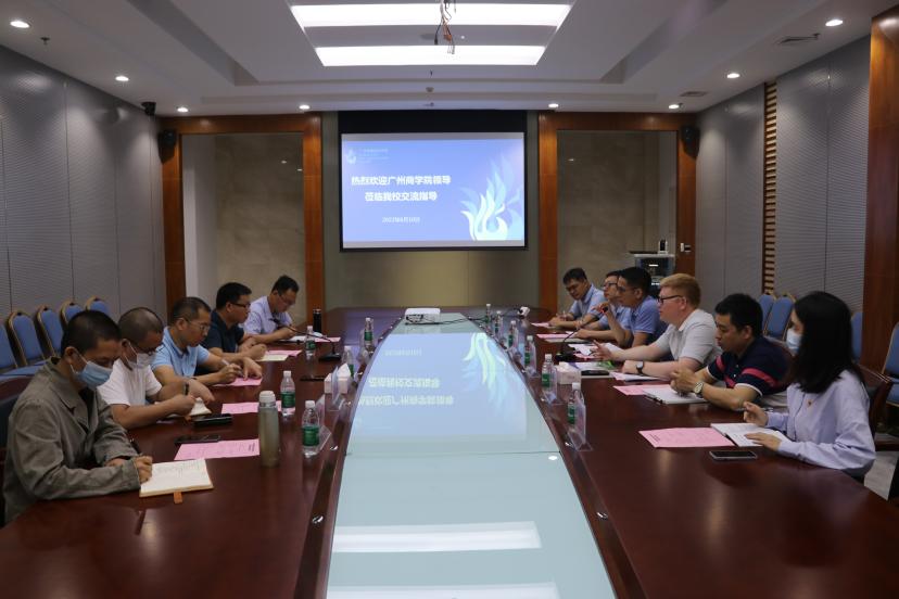 6月10日,广州商学院现代信息产业学院党总支书记、副院长关树基,副院长李绍强一行6人来我院调研特色产业学院建设工作。学院院长曹春华,党委书记、副院长刘杰,软件教研室主任张宇,ICT教研室主任禤东桦接待了关树基一行,座谈会由副院长汤锋主持。