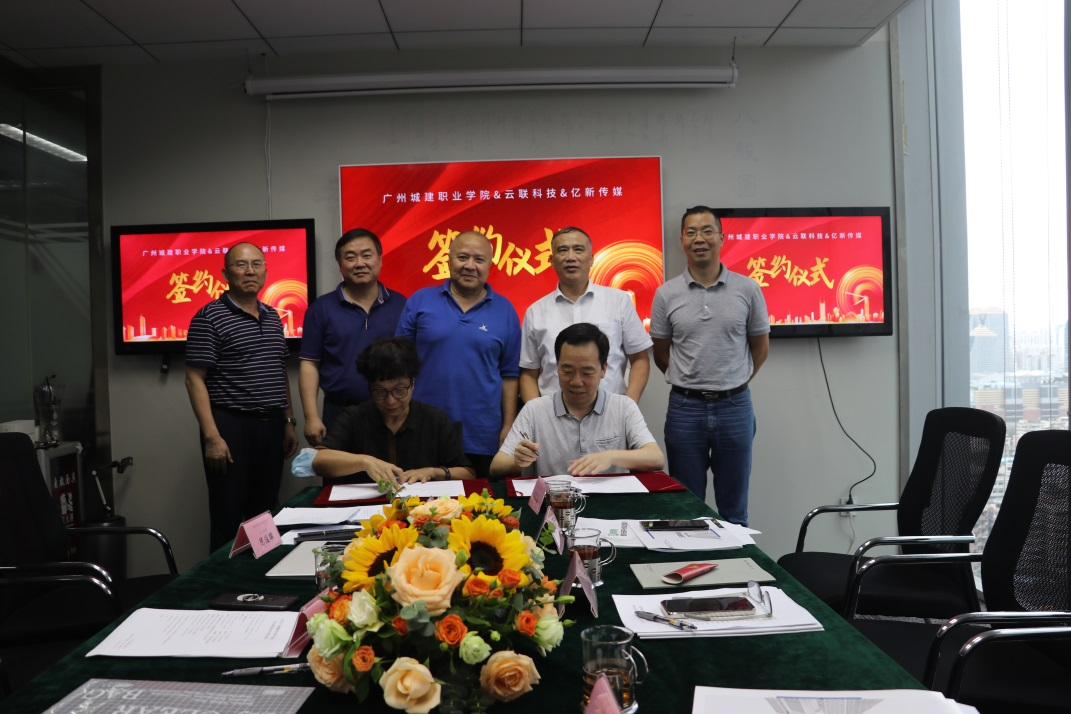 学校党委副书记鲁岩代表学校分别与佛山云联科技有限公司、亿新传媒信息技术(广州)有限公司签订了合作协议。