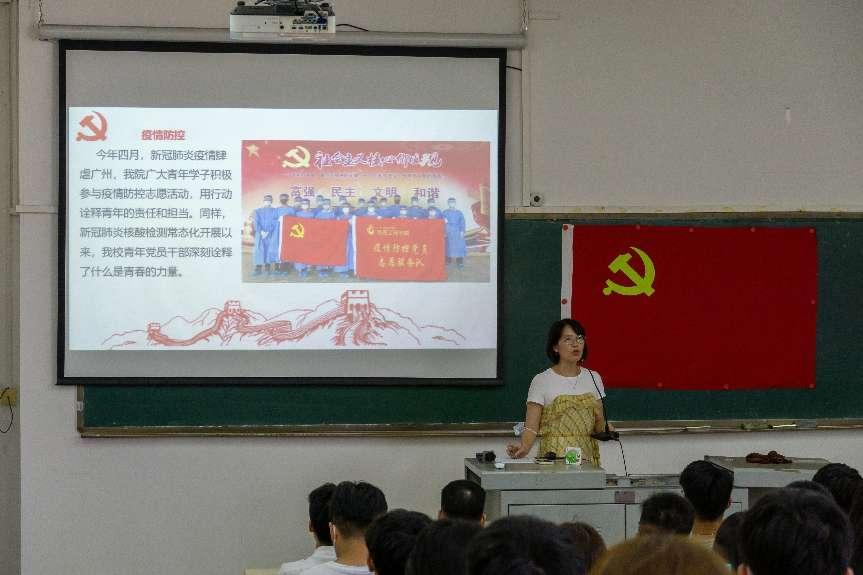 大会伊始,苏碧玲以《青春的力量》为主题给毕业生党员上离校前“最后一堂党课”。苏碧玲给大家讲述了一代代青年在党的领导下持续努力奋斗,绽放青春风采,谱写人生华章,为实现中华民族伟大复兴贡献力量的鲜活例子,引导我院毕业生党员向青春致敬、向榜样学习,激励同学们牢记党的教诲,不忘初心、砥砺奋进,用实际行动迎接党的二十大胜利召开。